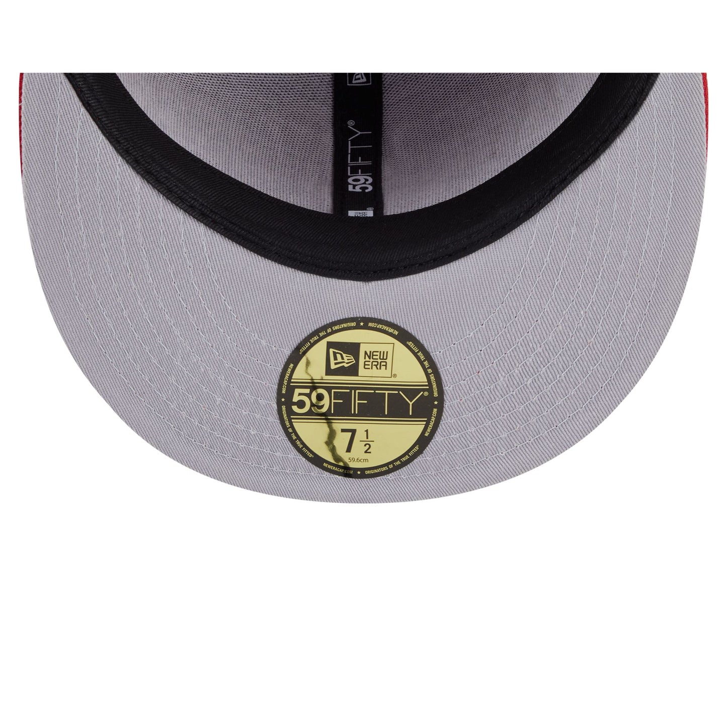 The San Francisco 49ers Oversized 59FIFTY Fitted Cap features an embroidered 49ers Historic oversized graphic at the front panels and visor. Additional details include a logo at the right-wear side, an NFL Shield logo at the rear, and a gray undervisor.