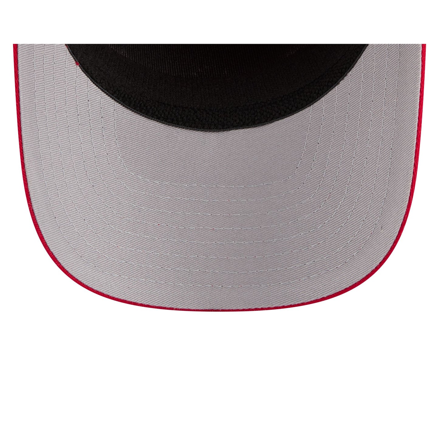 The San Francisco 49ers Property of Patch Split Panel 9SEVENTY Stretch-Snap features a woven "Property of" 49ers patch a the front panels with a split crown construction. Additional details include an adjustable stretch-snap closure at the rear and a gray undervisor.