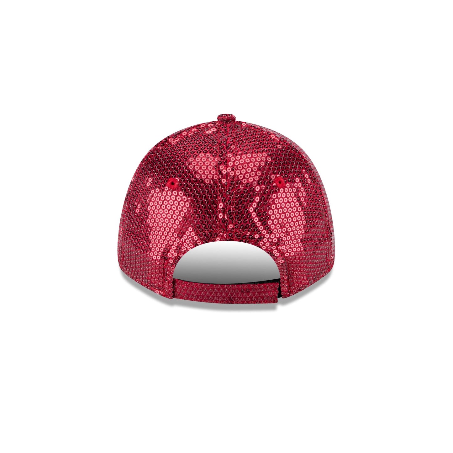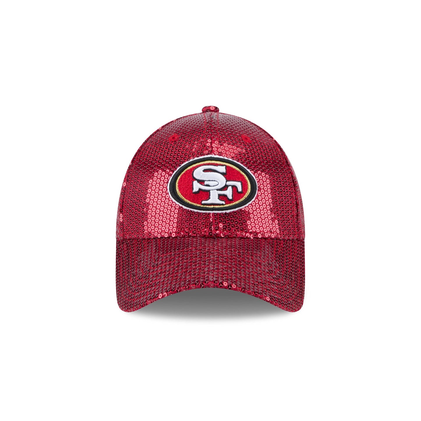 The San Francisco 49ers Sequin Women's 9FORTY Adjustable Cap features an embroidered 49ers logo at the front panels with sequins throughout the cap and an adjustable hook-and-loop closure at the rear.