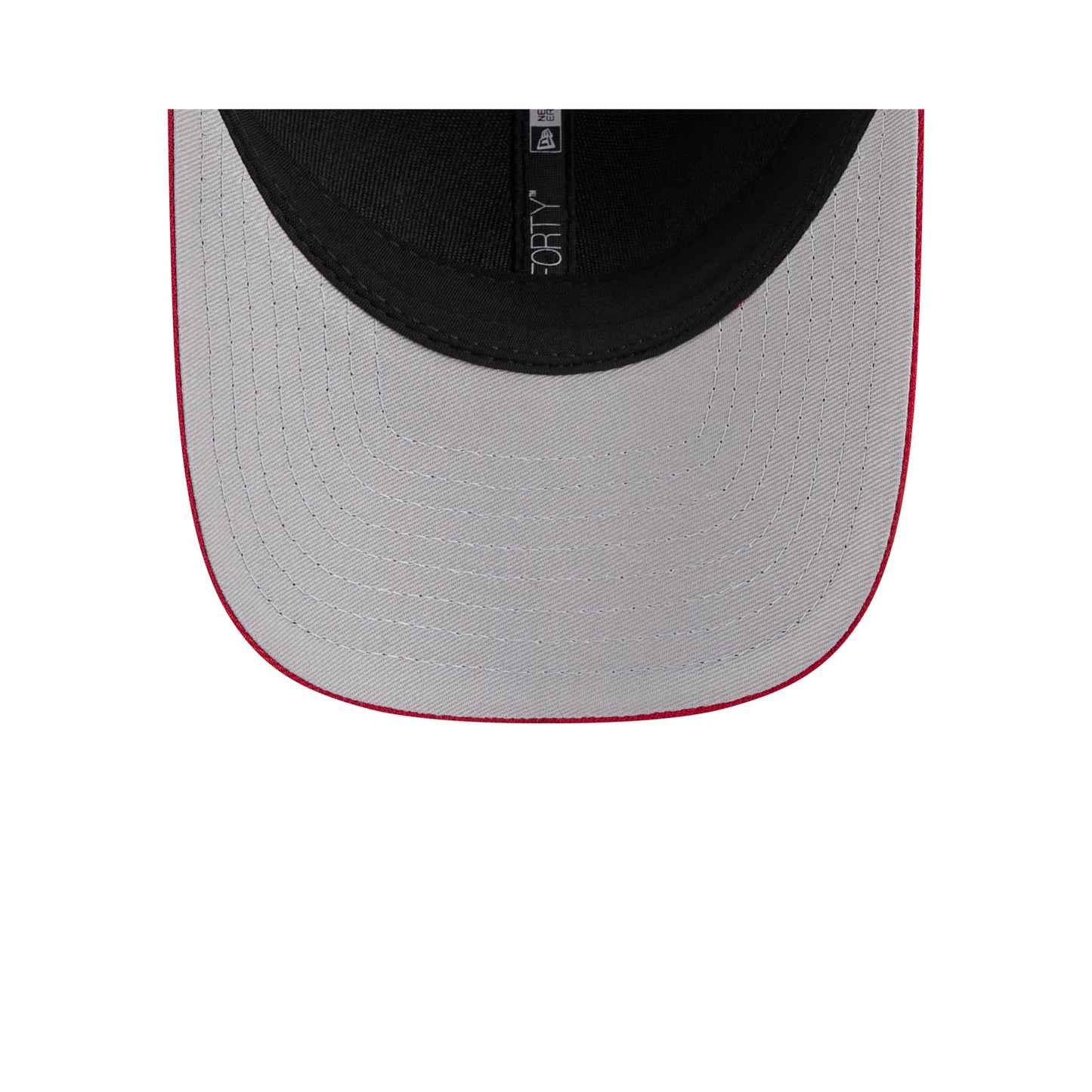The San Francisco 49ers Team Kids 9FORTY M-Crown Snapback features an embroidered 49ers logo at the front panels with a matching NFL Shield logo above an adjustable snapback closure at the rear and a gray undervisor.