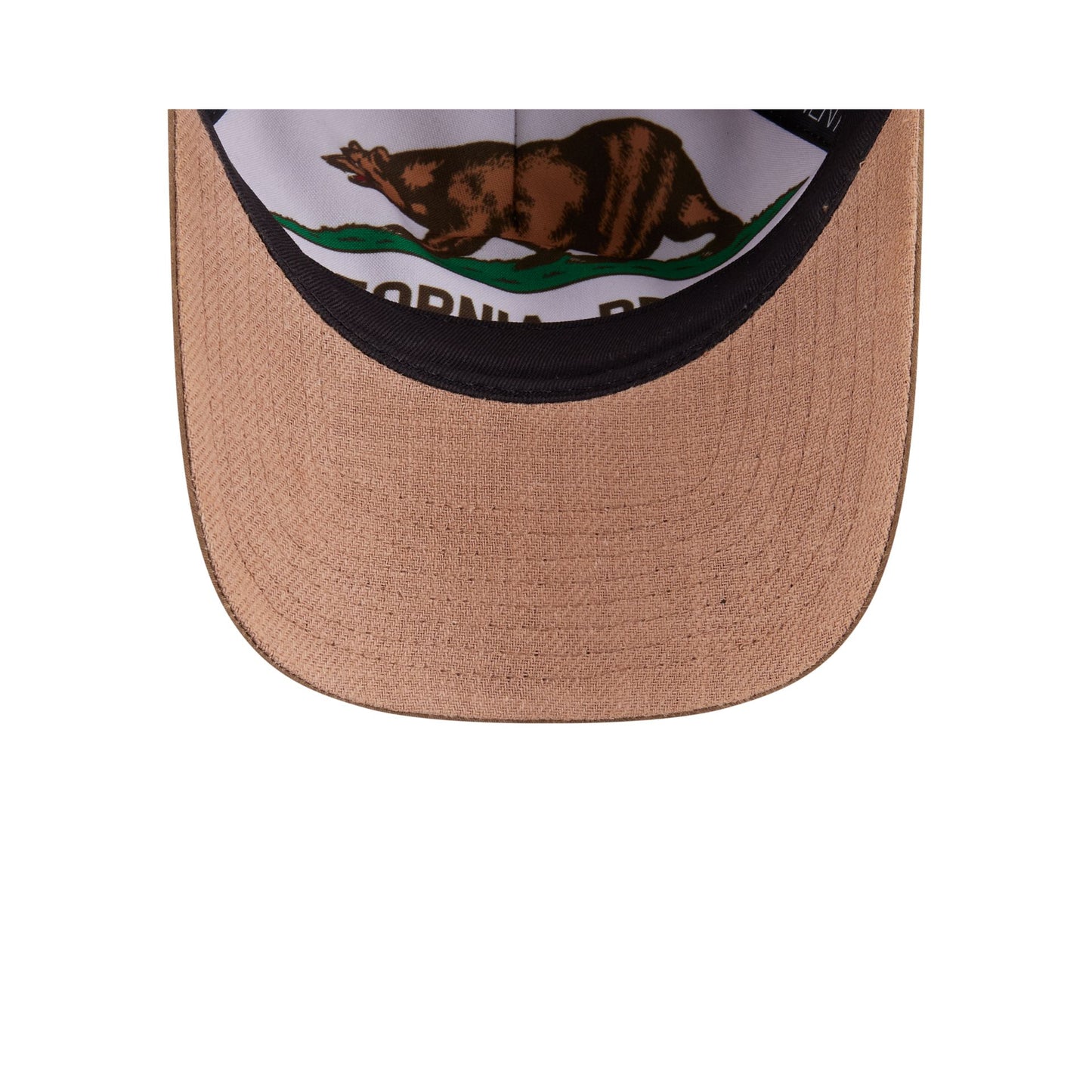 The San Francisco 49ers Utility Linen 9TWENTY A-Frame Adjustable Cap features a woven 49ers tag at the front panels against a linen fabrication with a team logo at the right-wear side. Additional details include the state or city flag sublimation at the interior of the cap and an adjustable D-Ring closure at the rear.
