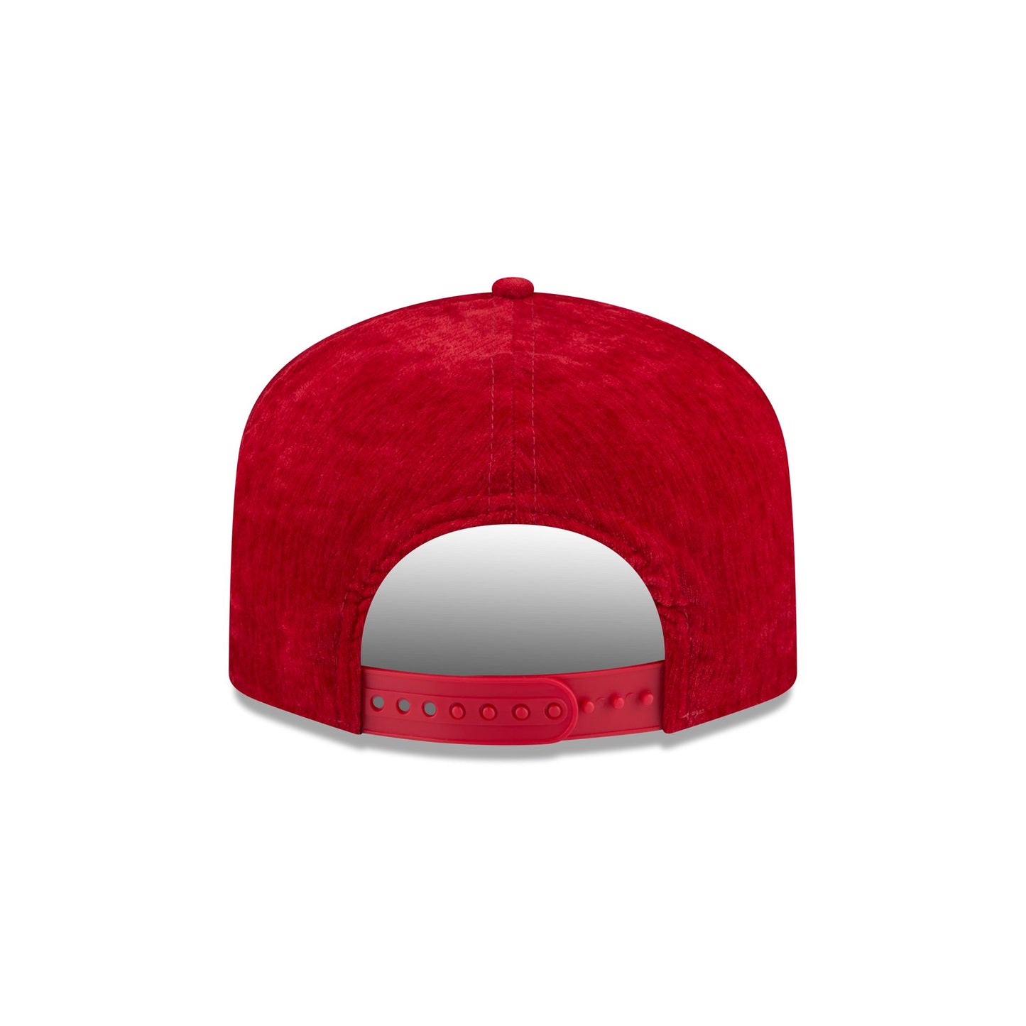 The San Francisco 49ers Velvet Team Script 19TWENTY Adjustable Cap features an embroidered 49ers wordmark script at the front panels with a team logo at the right-wear side. Additional details include an adjustable snapback closure at the rear and a gray undervisor.