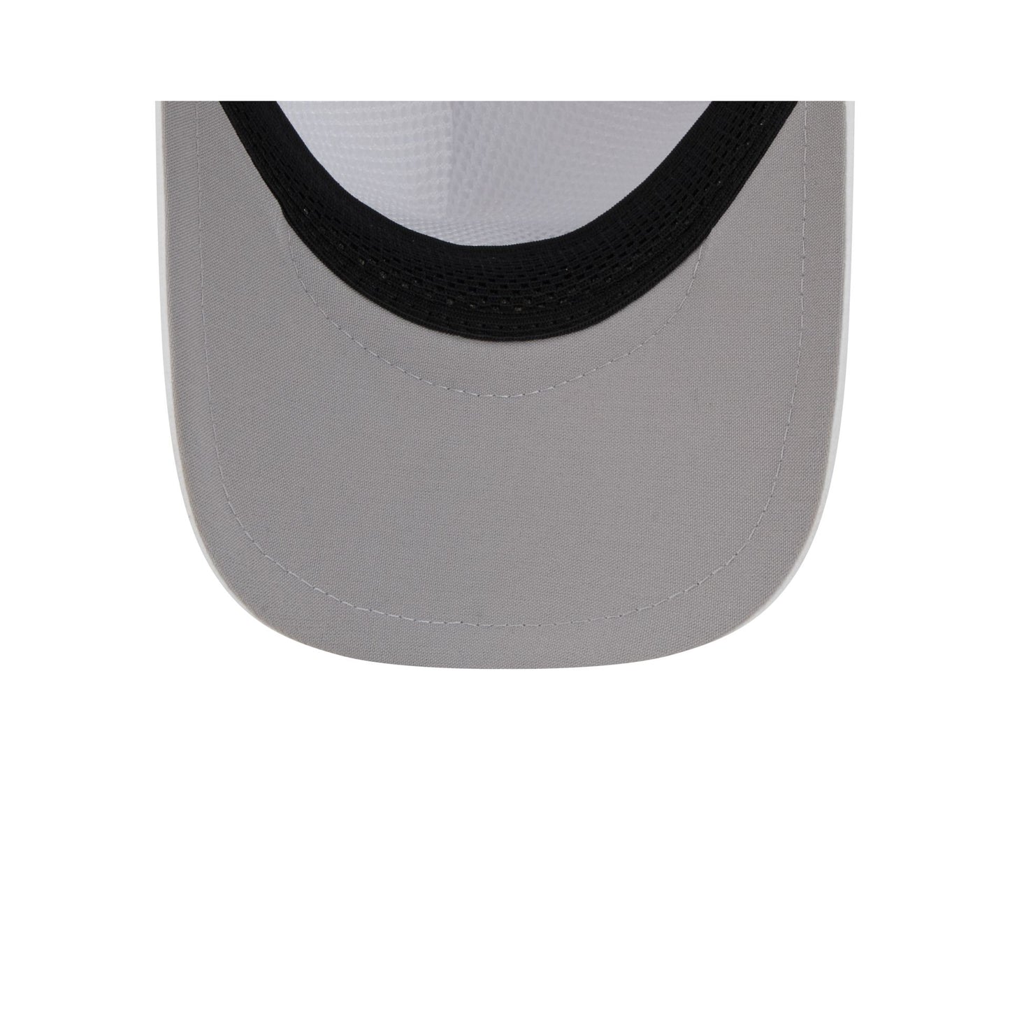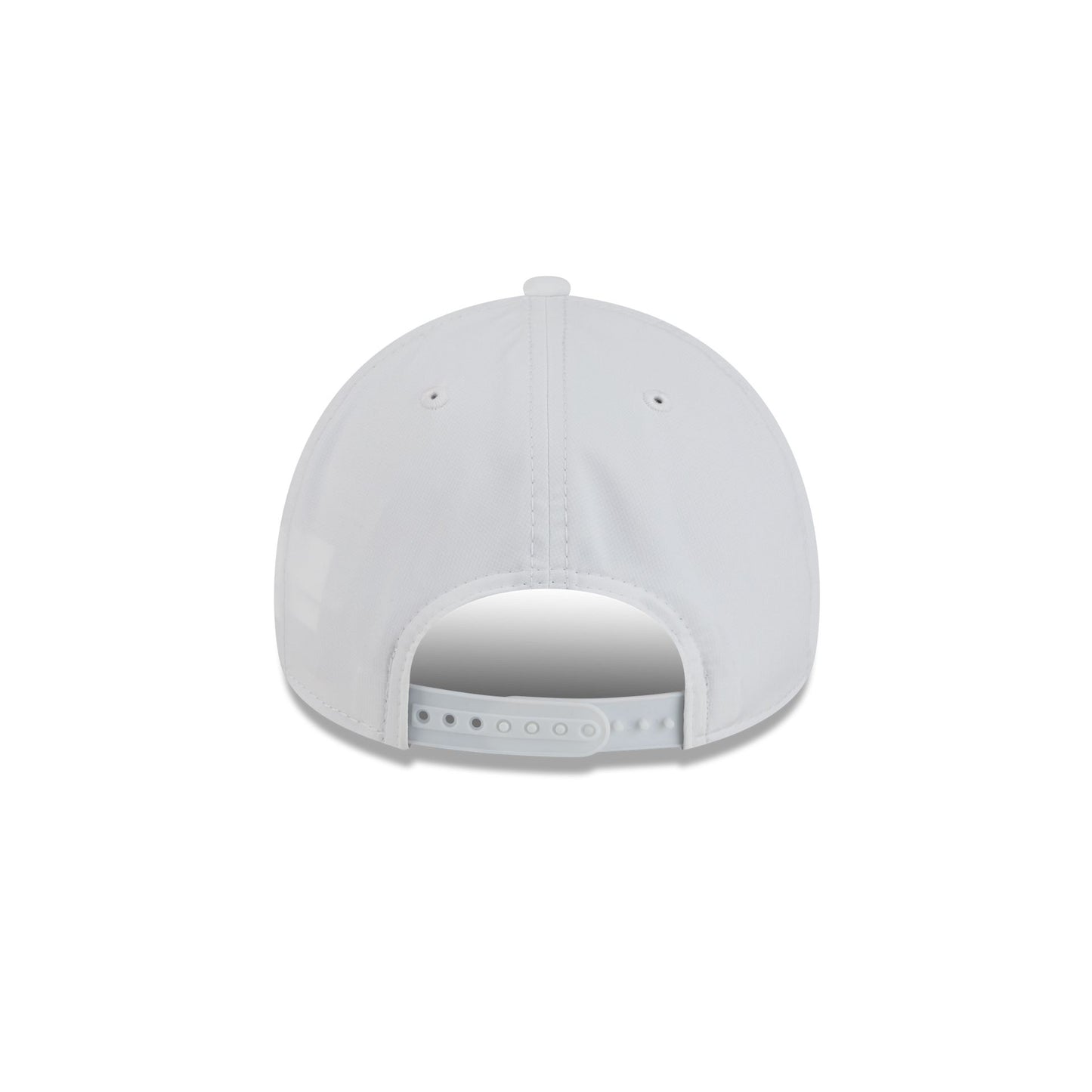 The San Francisco 49ers White 9FORTY APEX Snapback features a black and white embroidered 49ers logo at the front panel with an adjustable snapback closure at the rear and a gray undervisor.
