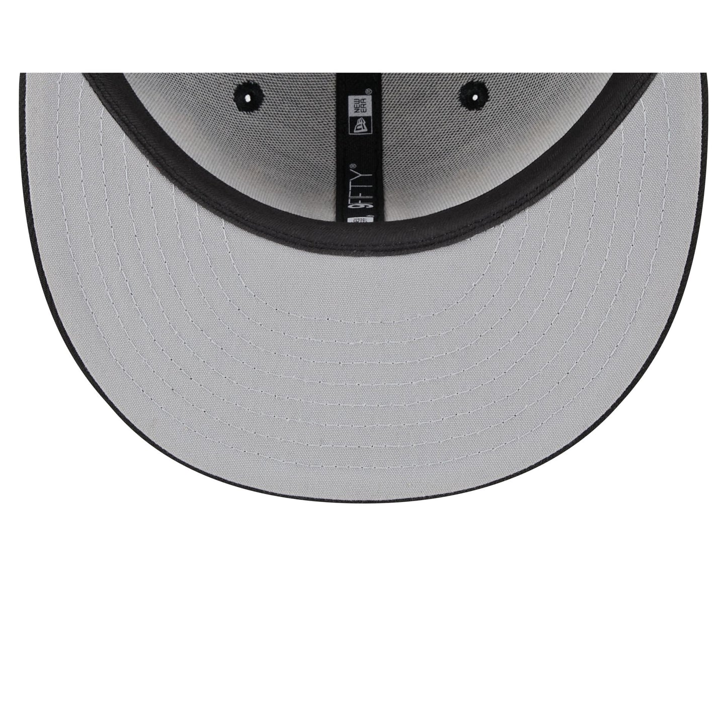 The San Francisco Giants 2025 Batting Practice 9FIFTY Snapback features an embroidered Giants logo at the front panels with a matching snapback closure at the rear. Additional details include a pivot knit fabrication, a black visor, and a gray undervisor.