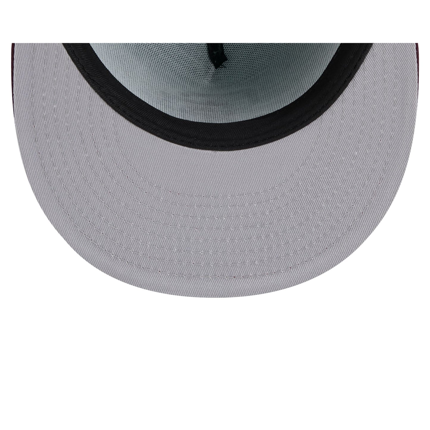 The San Francisco Giants Beach Kiss Blue 59FIFTY A-Frame Fitted Cap features an embroidered Giants Cooperstown logo at the front panels with a matching MLB Batterman logo at the rear. Additional details include a 60th Anniversary patch at the right-wear side and a gray undervisor.