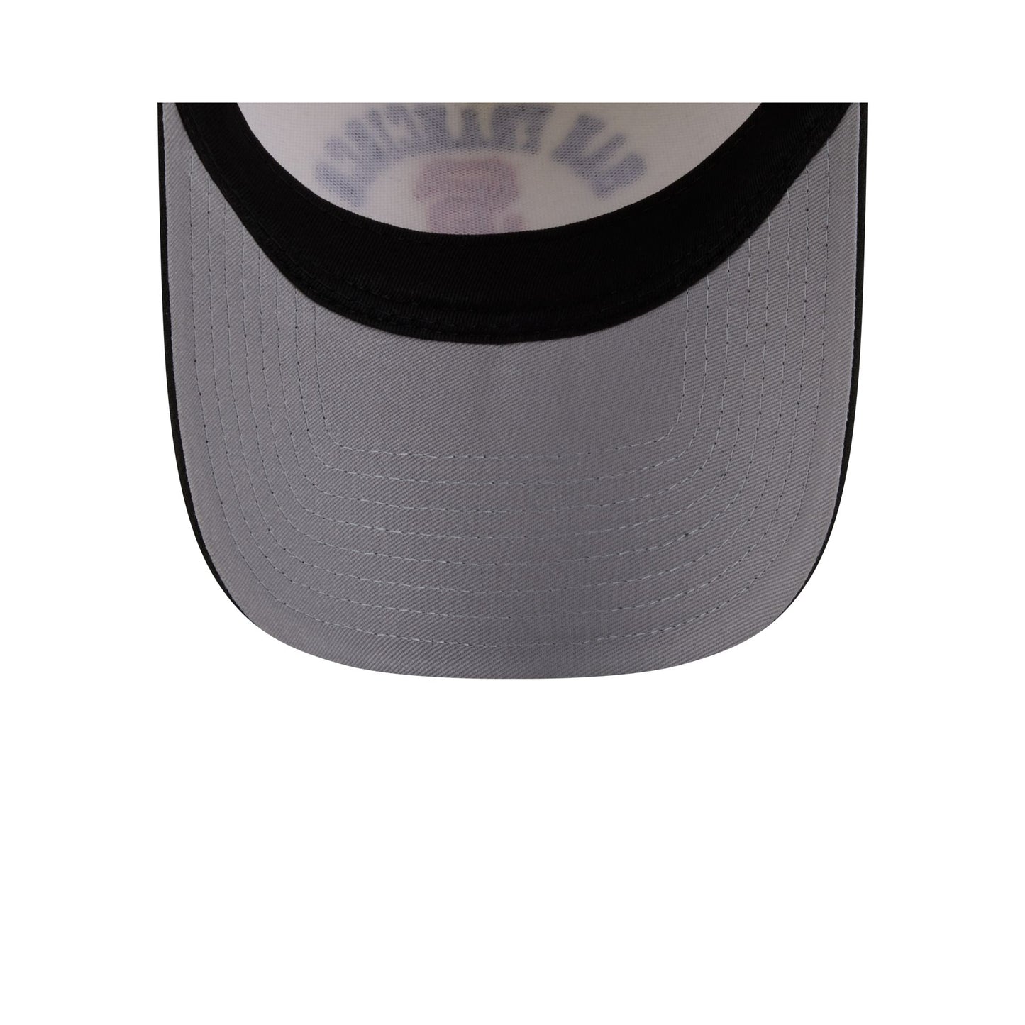 The San Francisco Giants Chrome White Arched 9FORTY A-Frame Snapback features an embroidered Giants arched logo graphic at the front panels with a team graphic at the right-wear side. Additional details include the establishment date above an adjustable snapback closure at the rear and a gray undervisor.