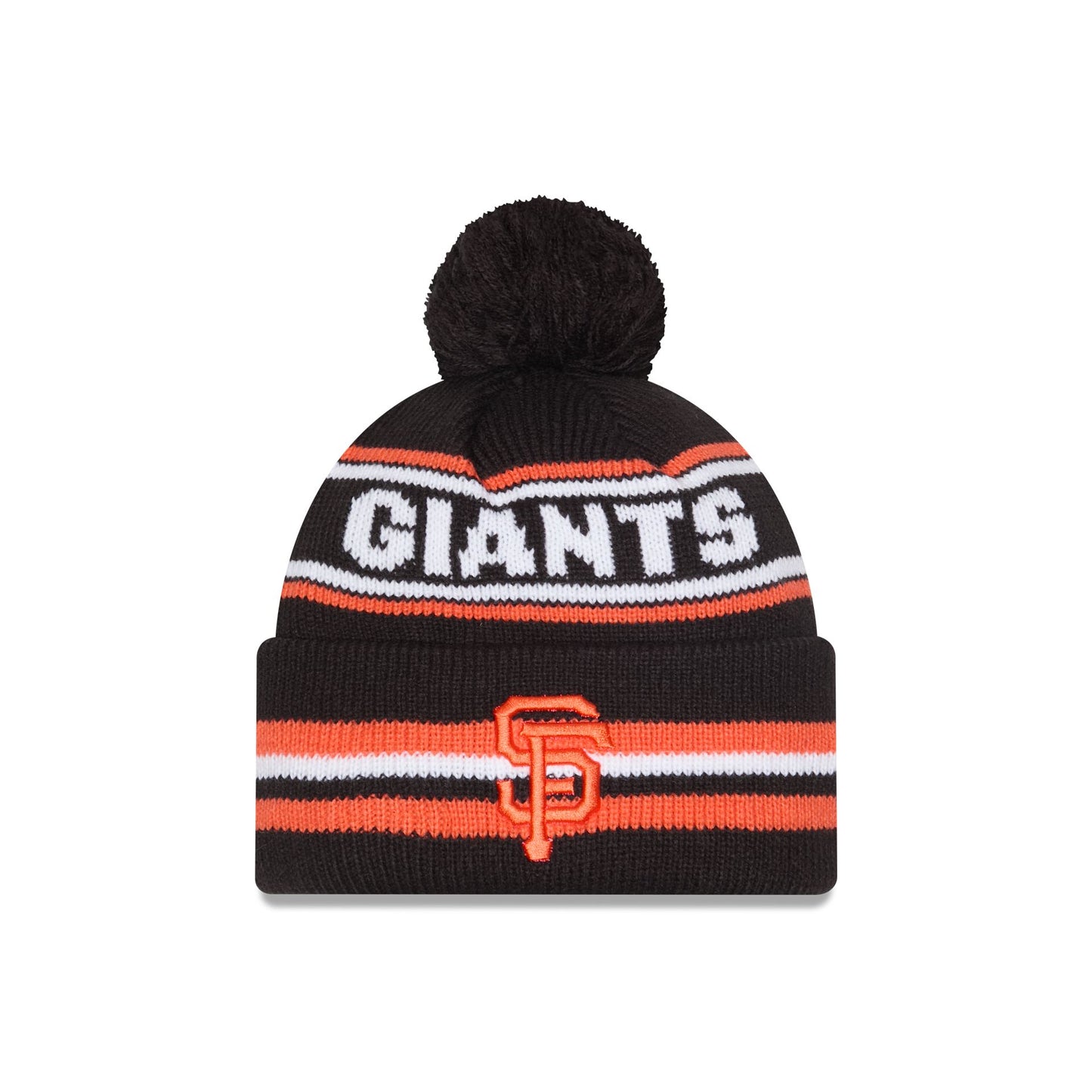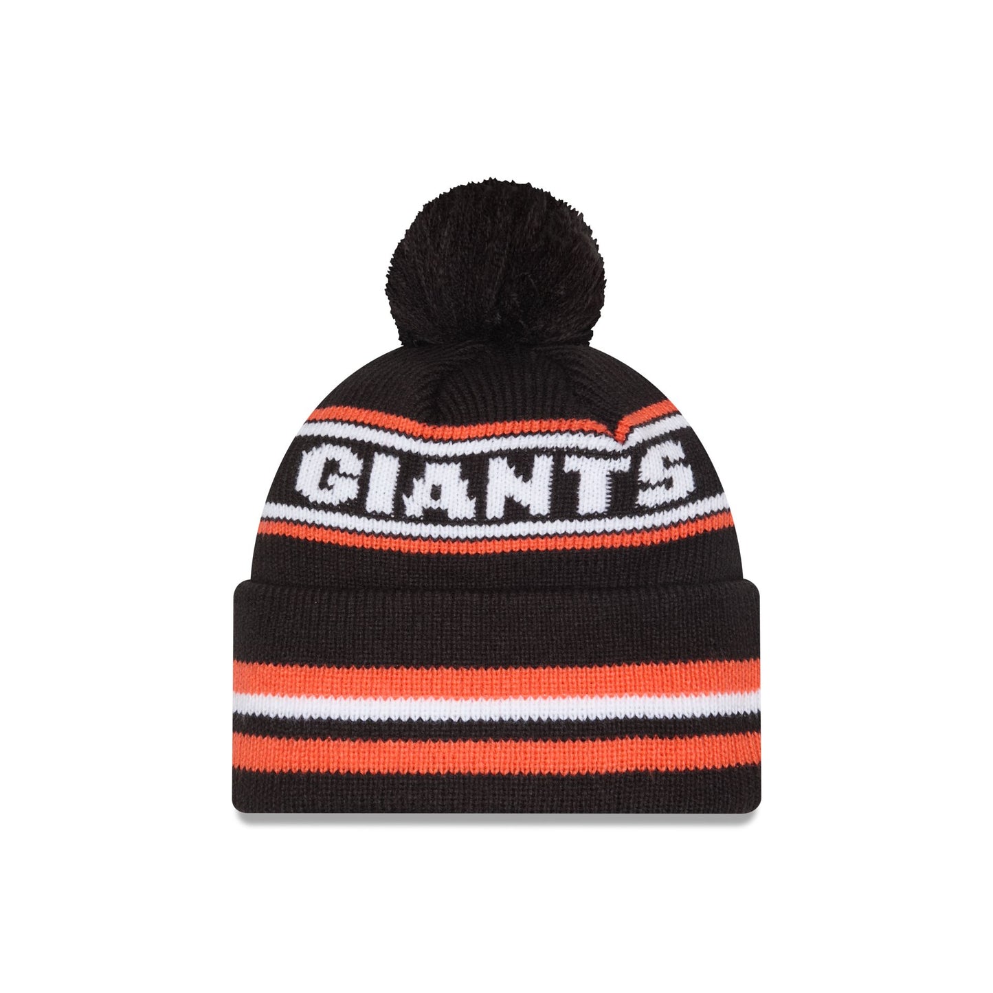 The San Francisco Giants Classic Pom Knit Hat features an embroidered Giants logo at the front cuff with a wordmark at the crown and a one-time removable pom.