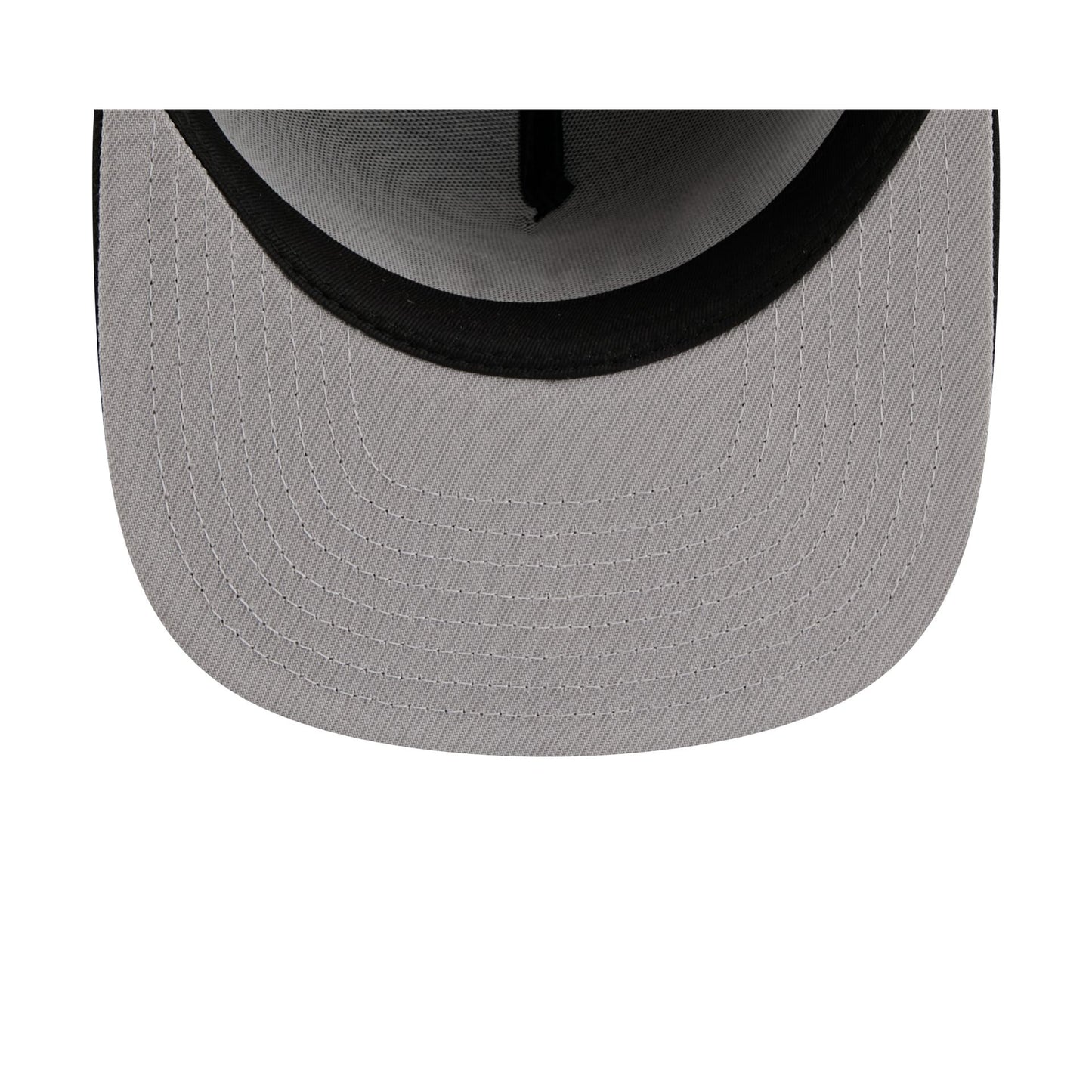The San Francisco Giants Grunge Plaid 9FIFTY A-Frame Adjustable Cap features an embroidered Giants logo at the front panel with an alternative logo above an adjustable metal clasp closure at the rear, a black visor, and a gray undervisor.