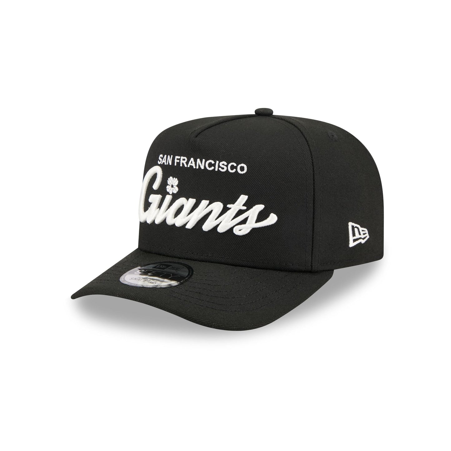 The San Francisco Giants Local Play 9FIFTY A-Frame Snapback features an embroidered Giants themed script wordmark at the front panels with a logo at the right-wear side. Additional details include an adjustable snapback closure at the rear and a gray undervisor.