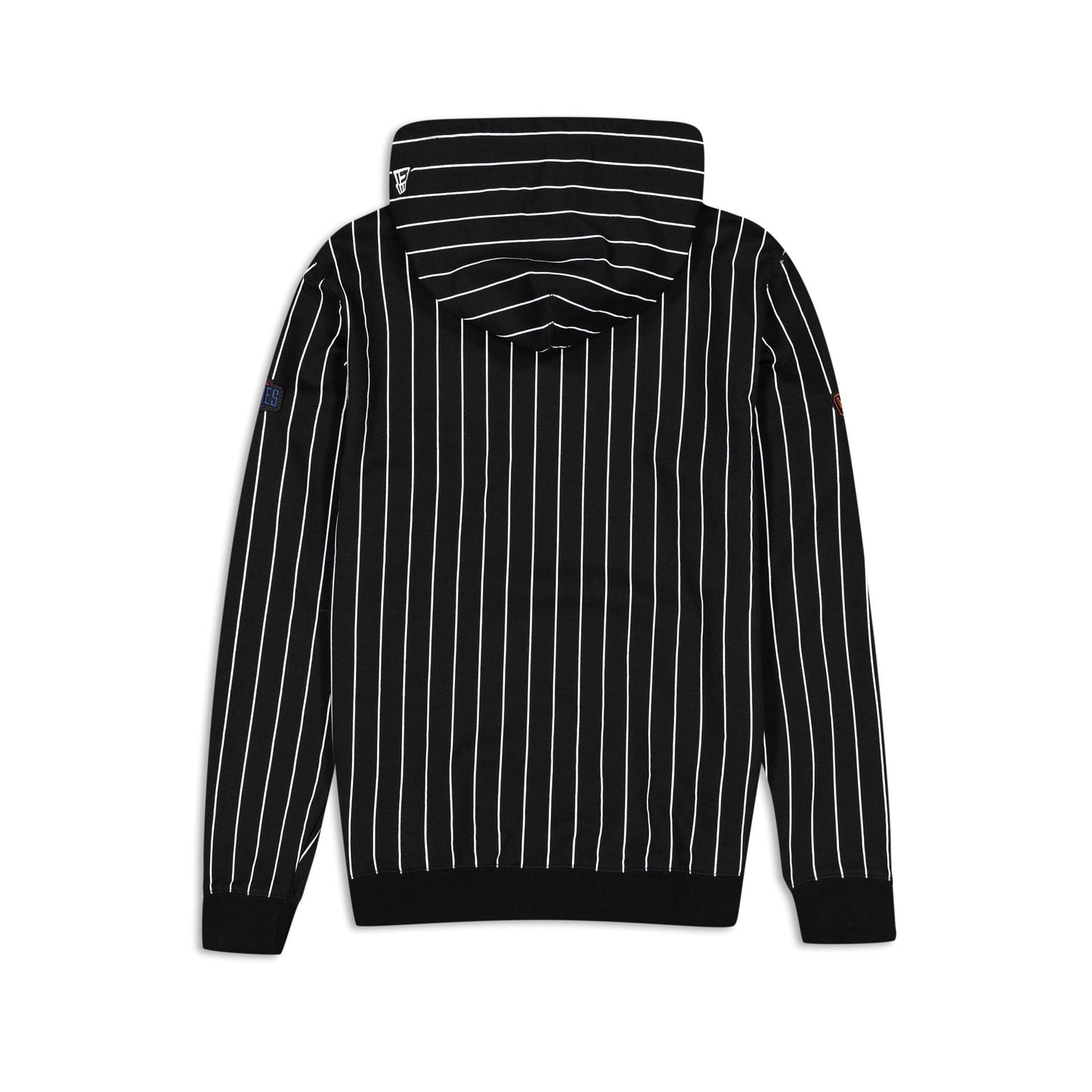 The San Francisco Giants Logo Select Pinstripe Hoodie features a chenille applique Giants logo at the left chest with team patches at each sleeve and an embroidered team wordmark at the rear.
