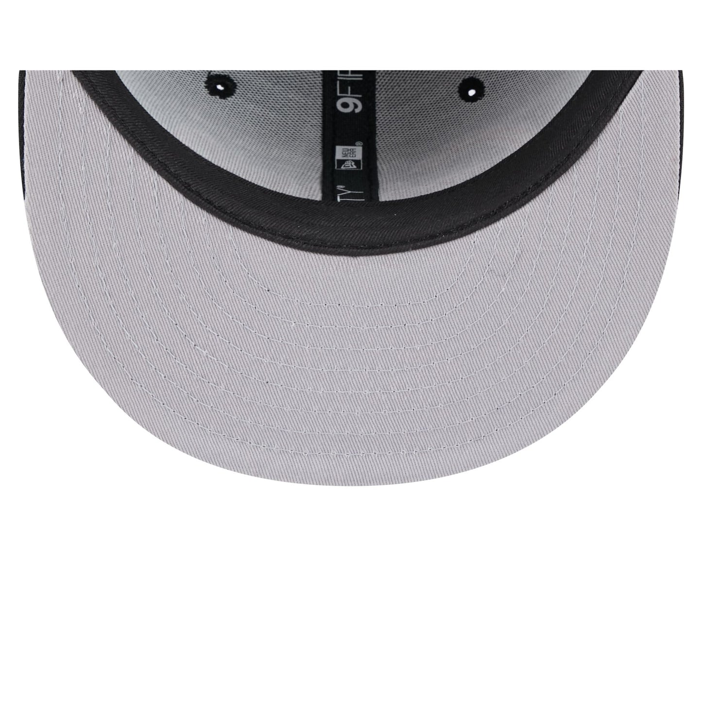 The San Francisco Giants Kids 9FIFTY Snapback Hat features an embroidered Giants wordmark at the front panels with a matching team logo at the right-wear side. Additional details include a gray undervisor and a snapback closure at the rear.