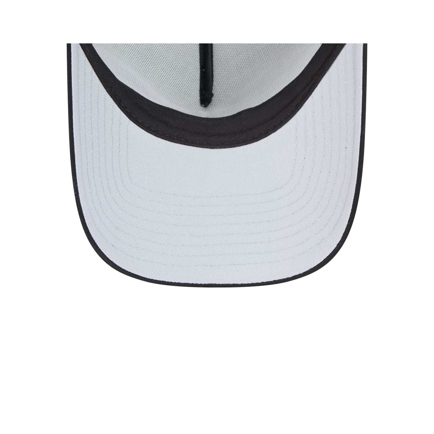 The San Francisco Giants Sport Classics 9FORTY A-Frame Trucker features a retro screen-printed Giants wordmark at the front panels with a team logo at the left and an MLB Batterman logo at the right. Additional details include a mesh back, a gray undervisor, and a snapback closure at the rear.