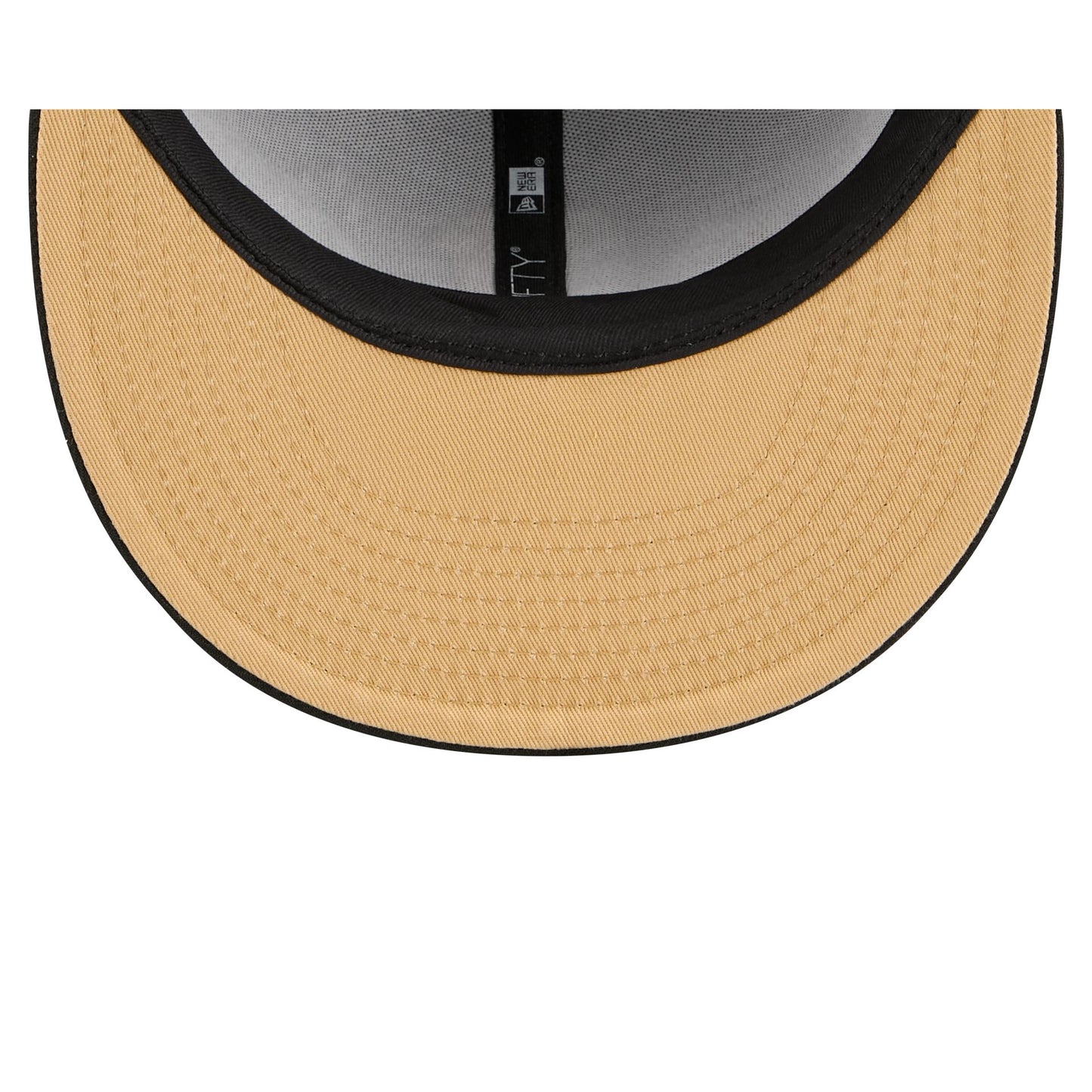 The San Francisco Giants Tasmanian Devil Swing 9FIFTY Snapback features an embroidered Giants logo and Tasmanian Devil batting graphic at the front panels with a Looney Tunes logo at the right-wear side. Additional details include a Tasmanian Devil script wordmark above an adjustable snapback closure at the rear and the character's graphic to the right.