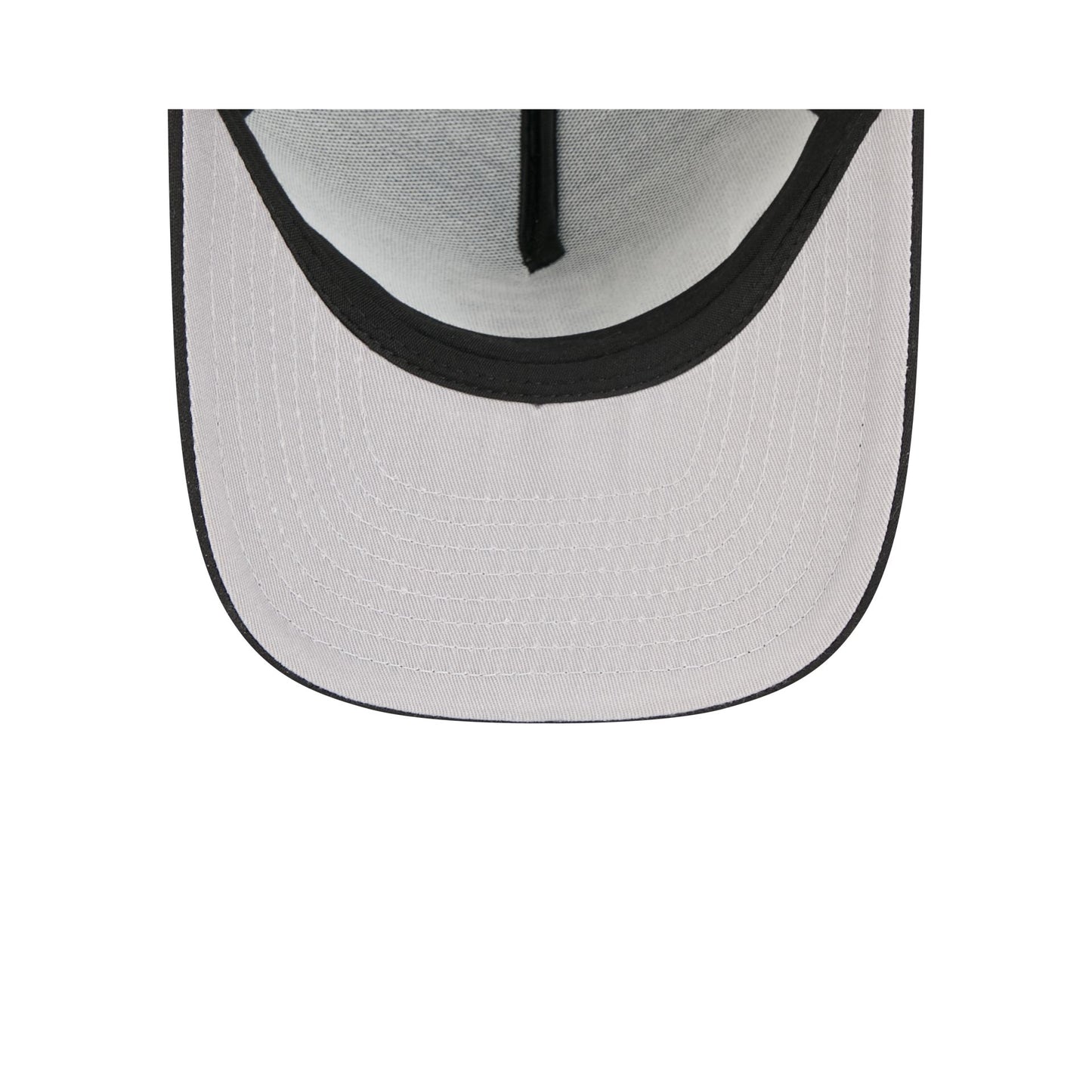 The San Francisco Giants Washed Black 9FIFTY A-Frame Trucker features an embroidered white Giants logo at the front panels set against a soft, washed fabrication throughout. Additional details include a rope at the visor, an adjustable snapback closure at the rear, and a gray undervisor.