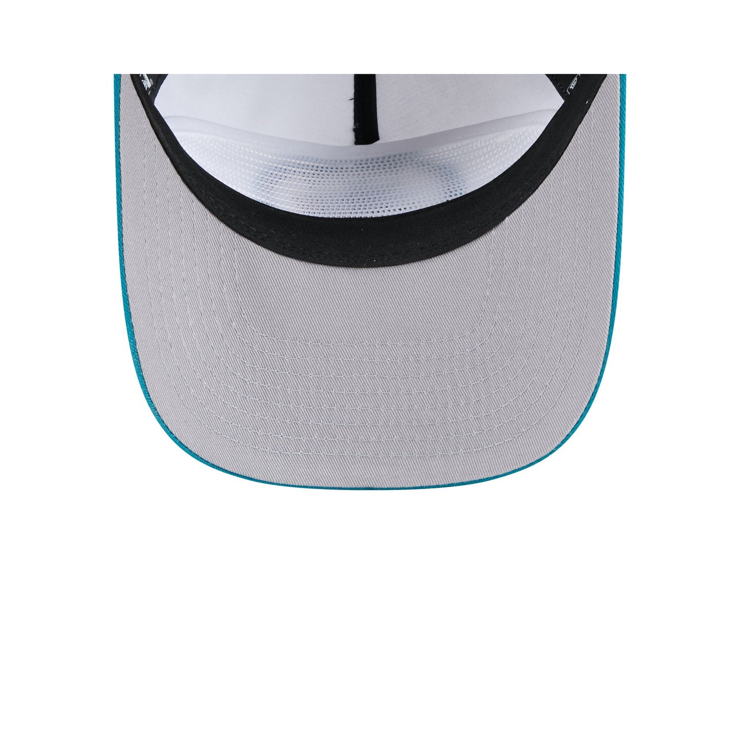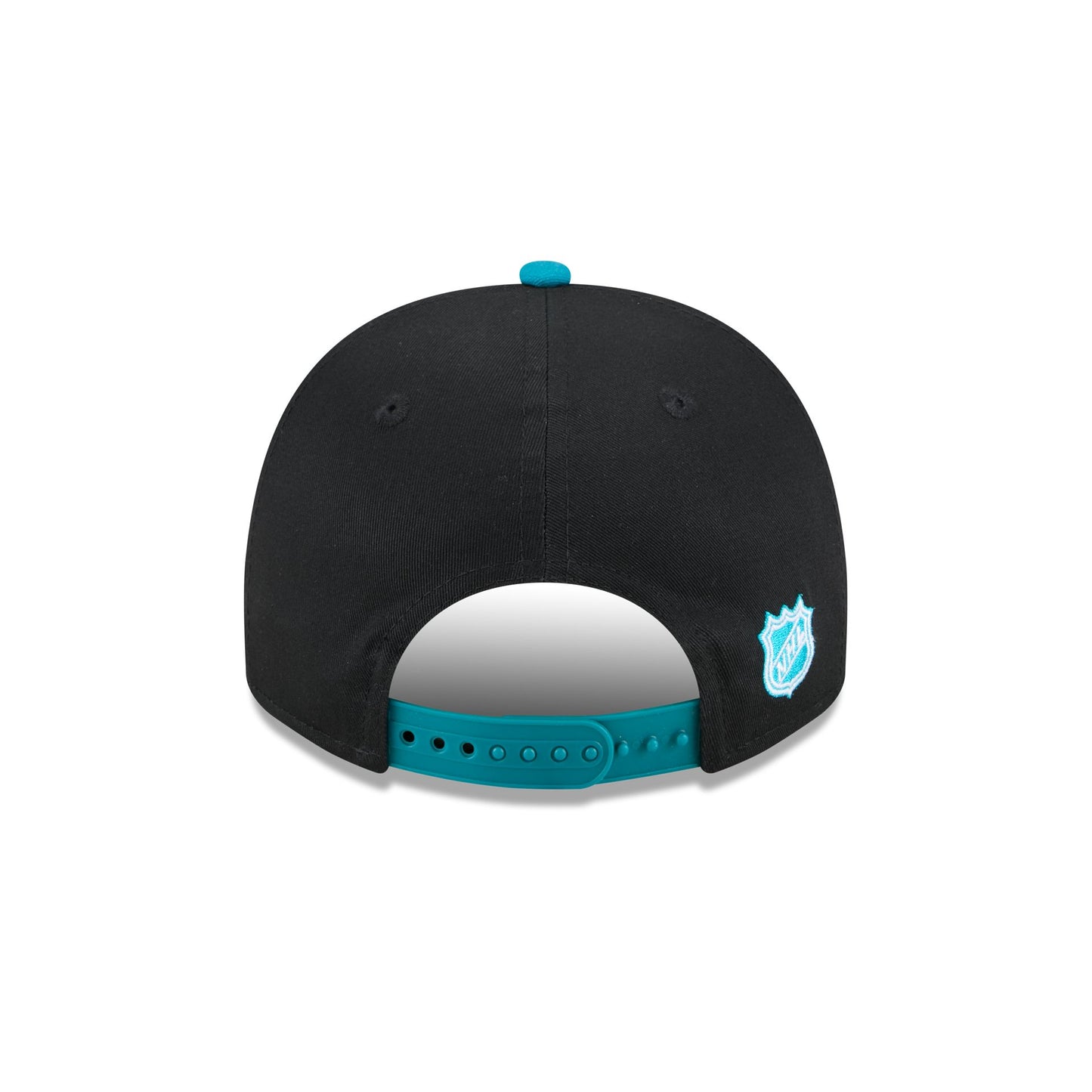 The San Jose Sharks NHL Pack Golfer features a Sharks Hockey Club patch at the front panel with a matching NHL Shield at the right of a snapback closure at the rear and a gray undervisor.