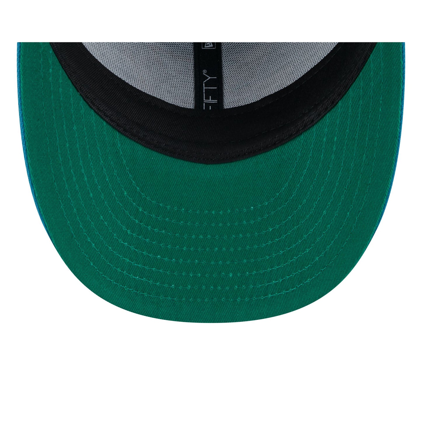 The San Jose Sharks NHL Pack Low Profile 59FIFTY Fitted Cap features an embroidered Sharks wordmark over a team logo at the front panels with a matching NHL Shield at the rear. Additional details include a team logo at the right-wear side with a green undervisor.