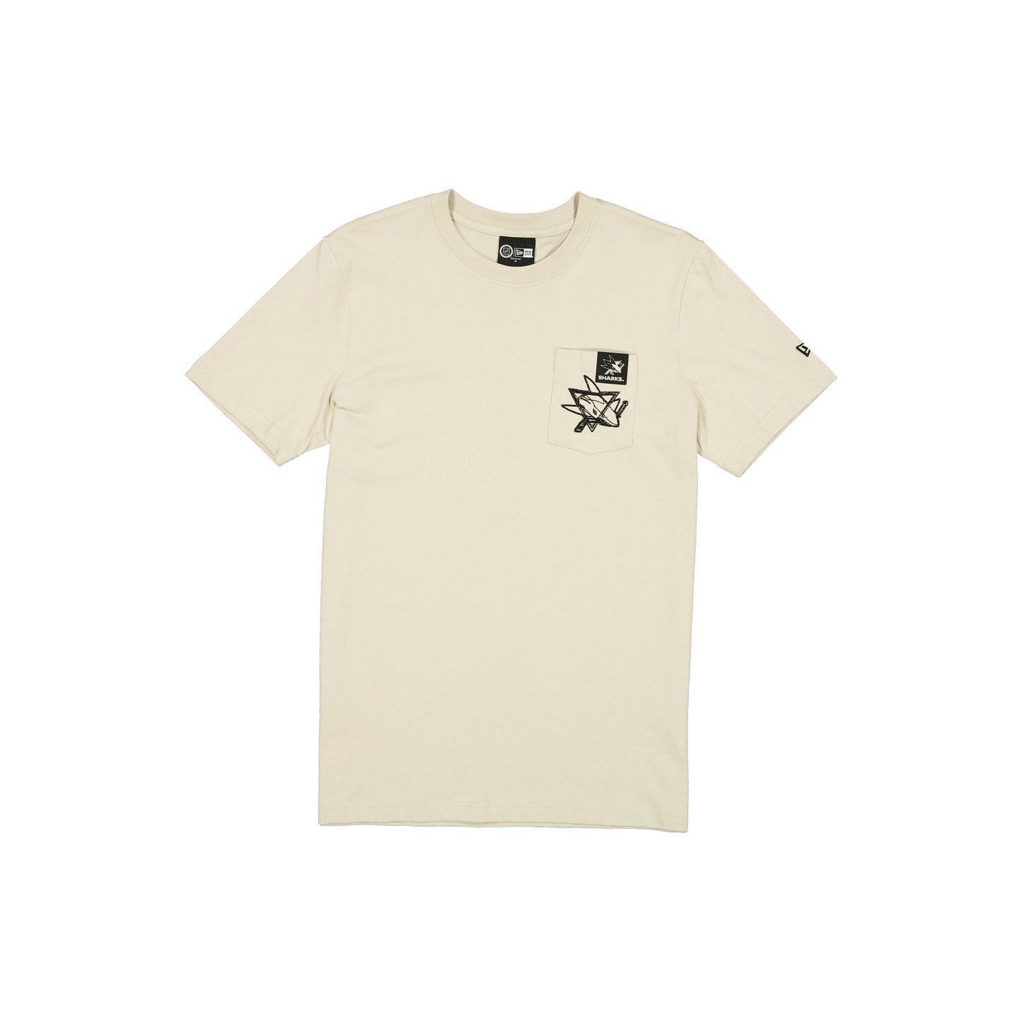 The San Jose Sharks Quilted Stone Pocket T-Shirt features a running stitch embroidered Sharks logo and a matching team jock tag at the left chest pocket.