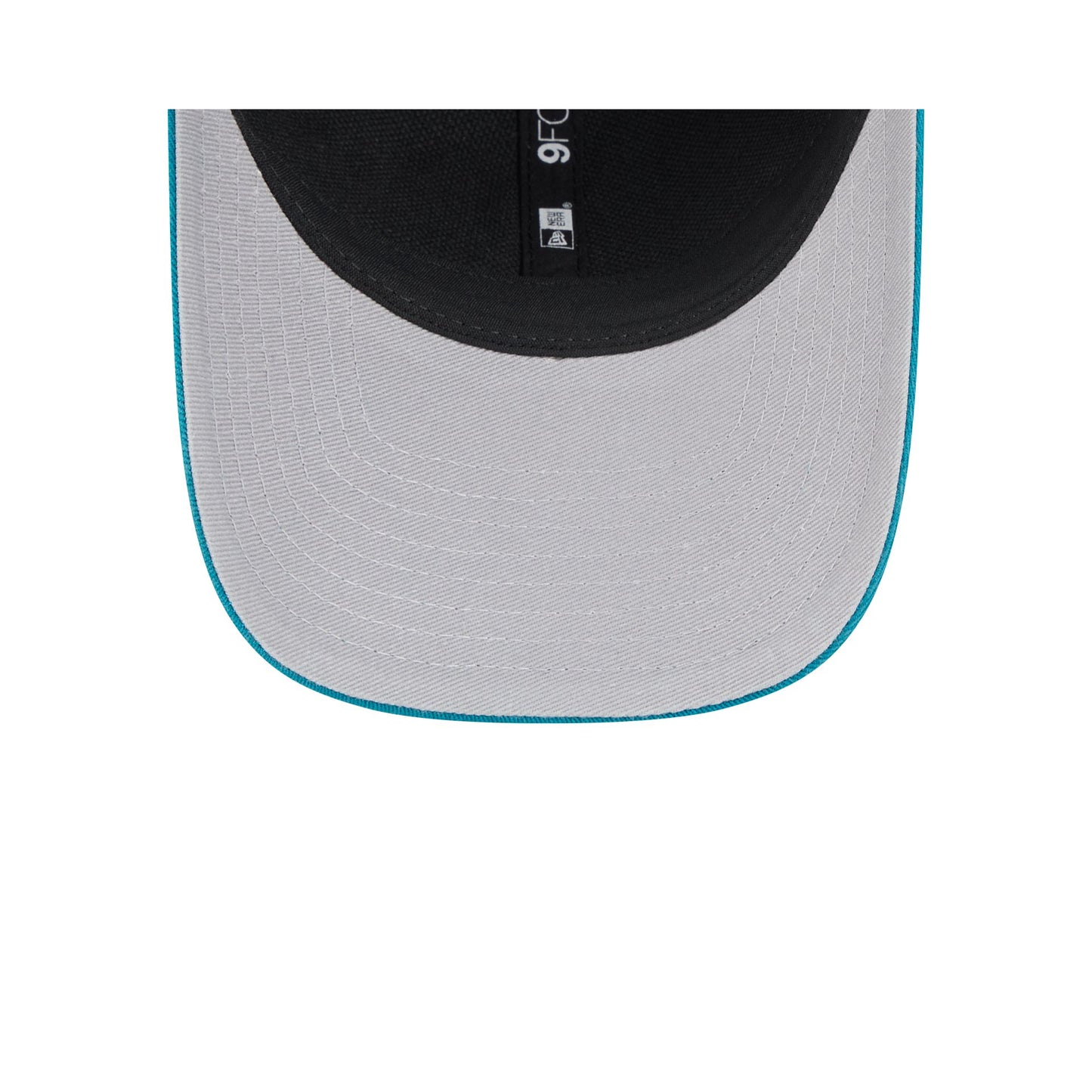 The San Jose Sharks Team Loyal 9FORTY M-Crown Snapback features an embroidered Sharks wordmark graphic at the front panels with a rope at the visor. Additional details include an adjustable snapback closure at the rear and a gray undervisor.