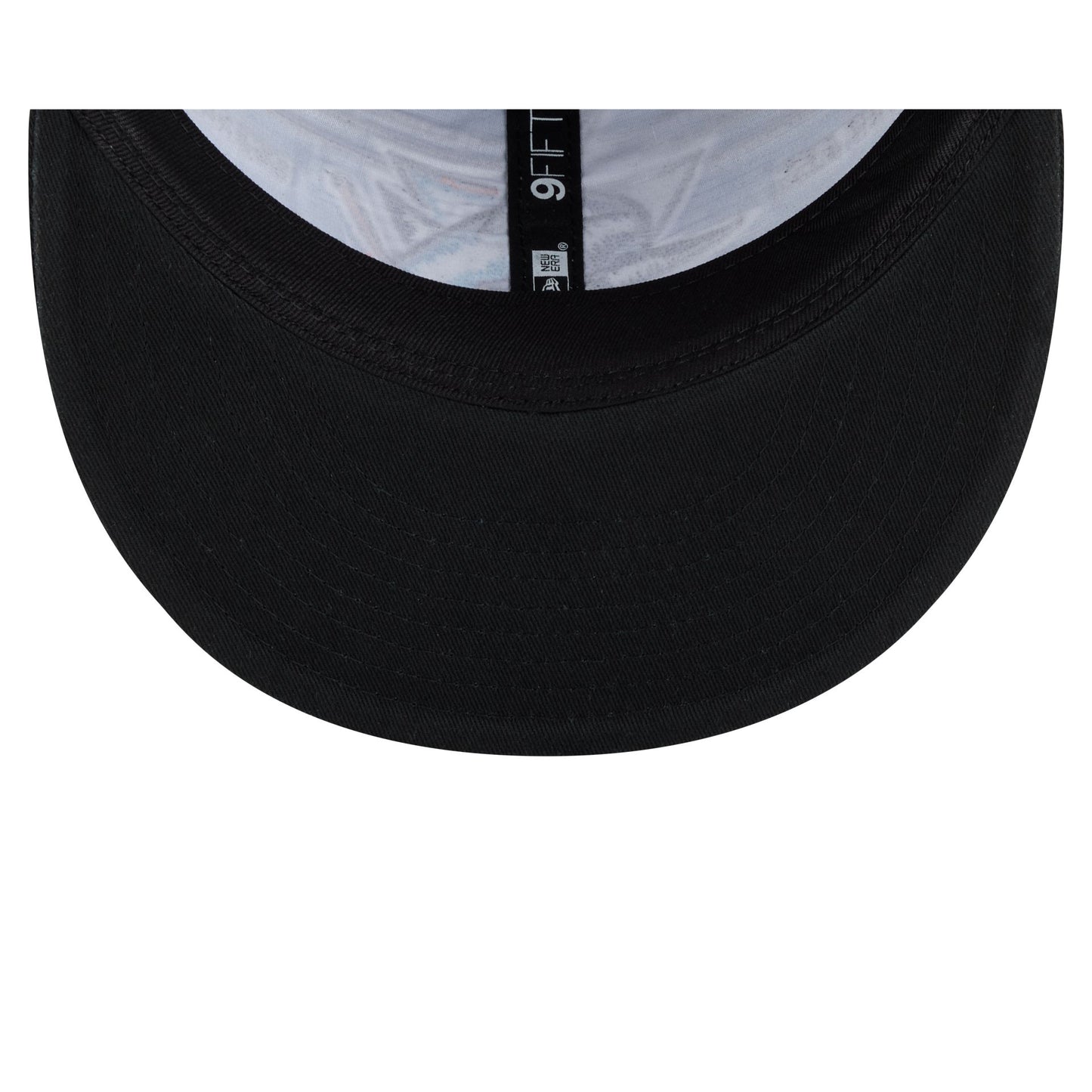 The San Jose Sharks Team Stripes Retro Crown 9FIFTY Snapback features an embroidered Sharks team stripe logo and wordmark at the front panels with an adjustable snapback closure at the rear.