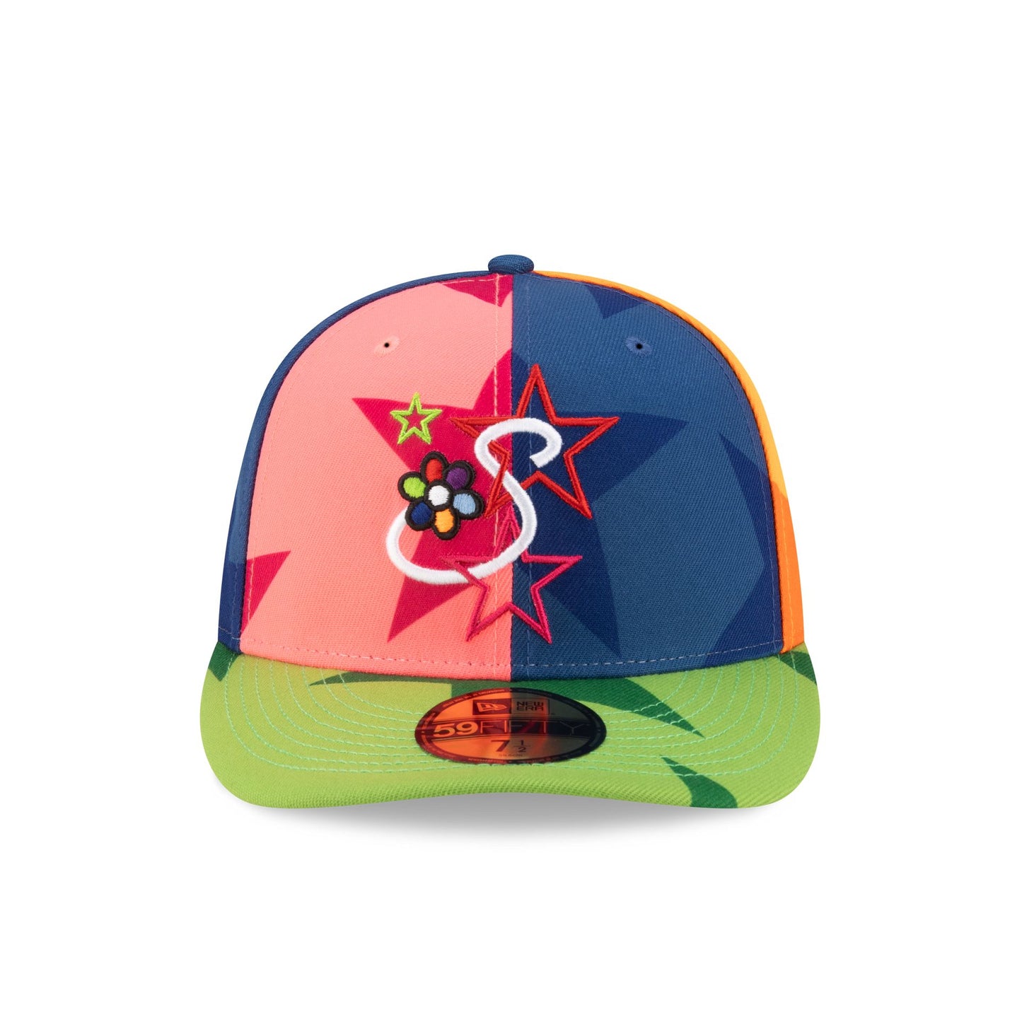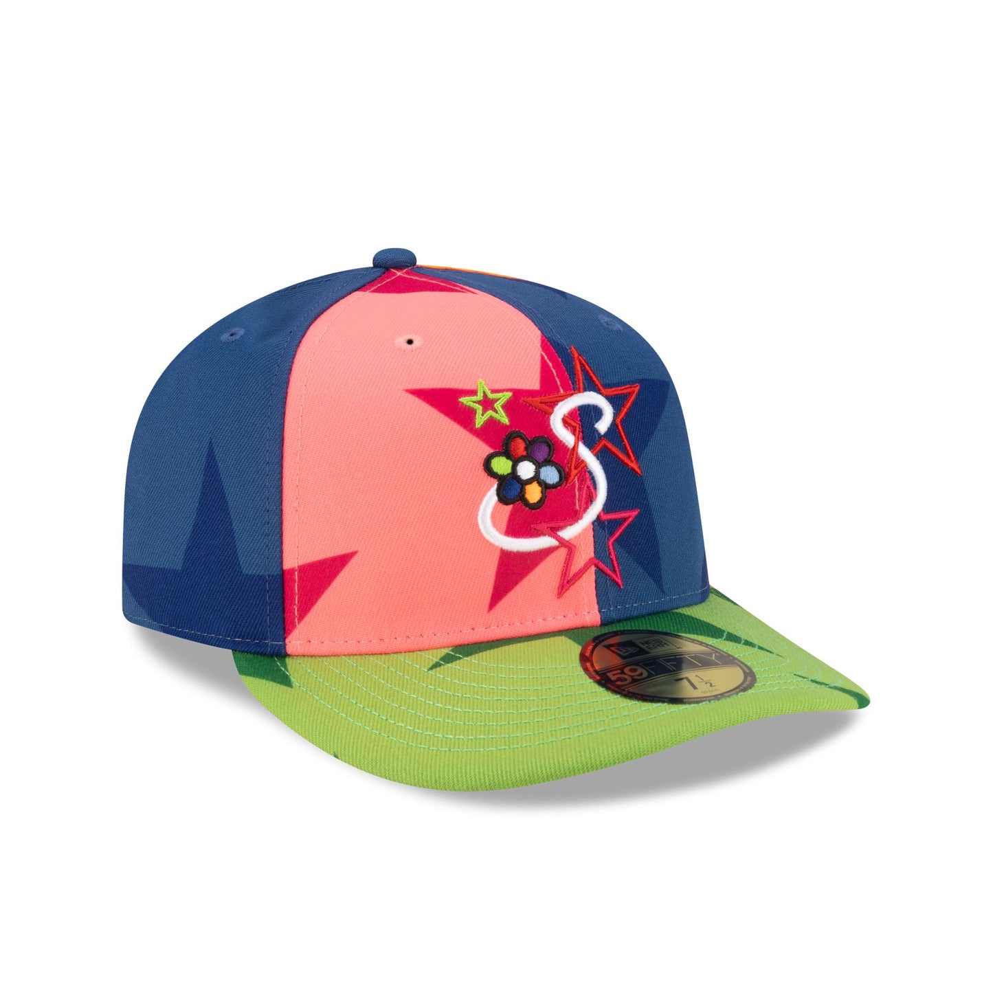 The Savior Worldwide x 2026 NBA All-Star Game Pinwheel 59FIFTY Fitted Cap features an embroidered S logo and star details at the front panels with a matching Savior wordmark above an NBA Logoman at the rear. Additional details include a star all over print fabrication with a Los Angeles city script at a gray undervisor.