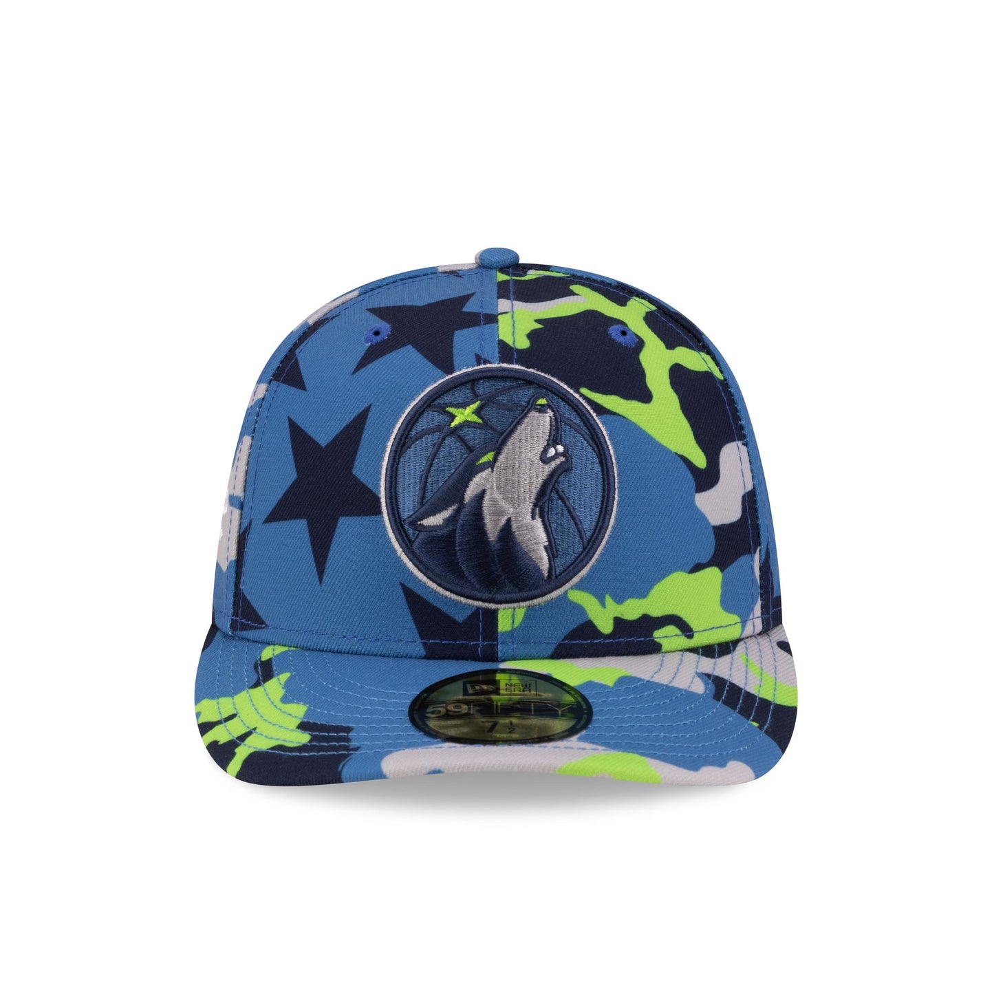 The Savior Worldwide x Minnesota Timberwolves 59FIFTY Fitted Cap features an embroidered Timberwolves logo at the front panels with a Savior wordmark above an NBA Logoman at the rear. Additional details include a 2026 NBA All-Star Game x Savior Worldwide patch at the right-wear side with a Minnesota script at a gray undervisor.