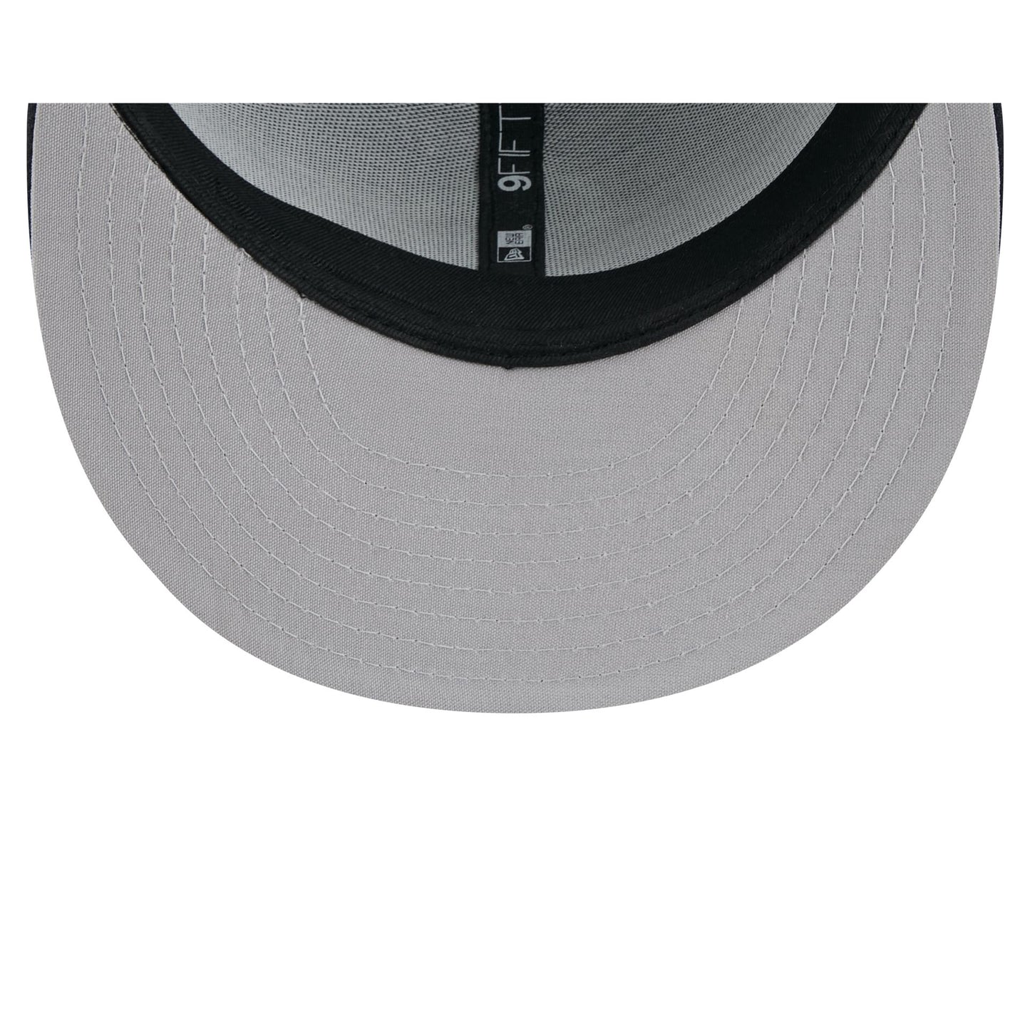 The Seattle Kraken Team Tag 9FIFTY Trucker features an embroidered Kraken logo at the front panels with a team tag on an snapback closure at a mesh rear and a gray undervisor.