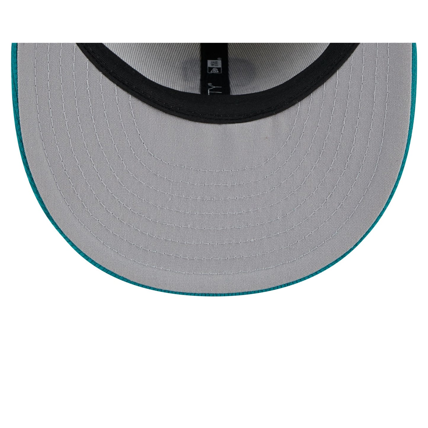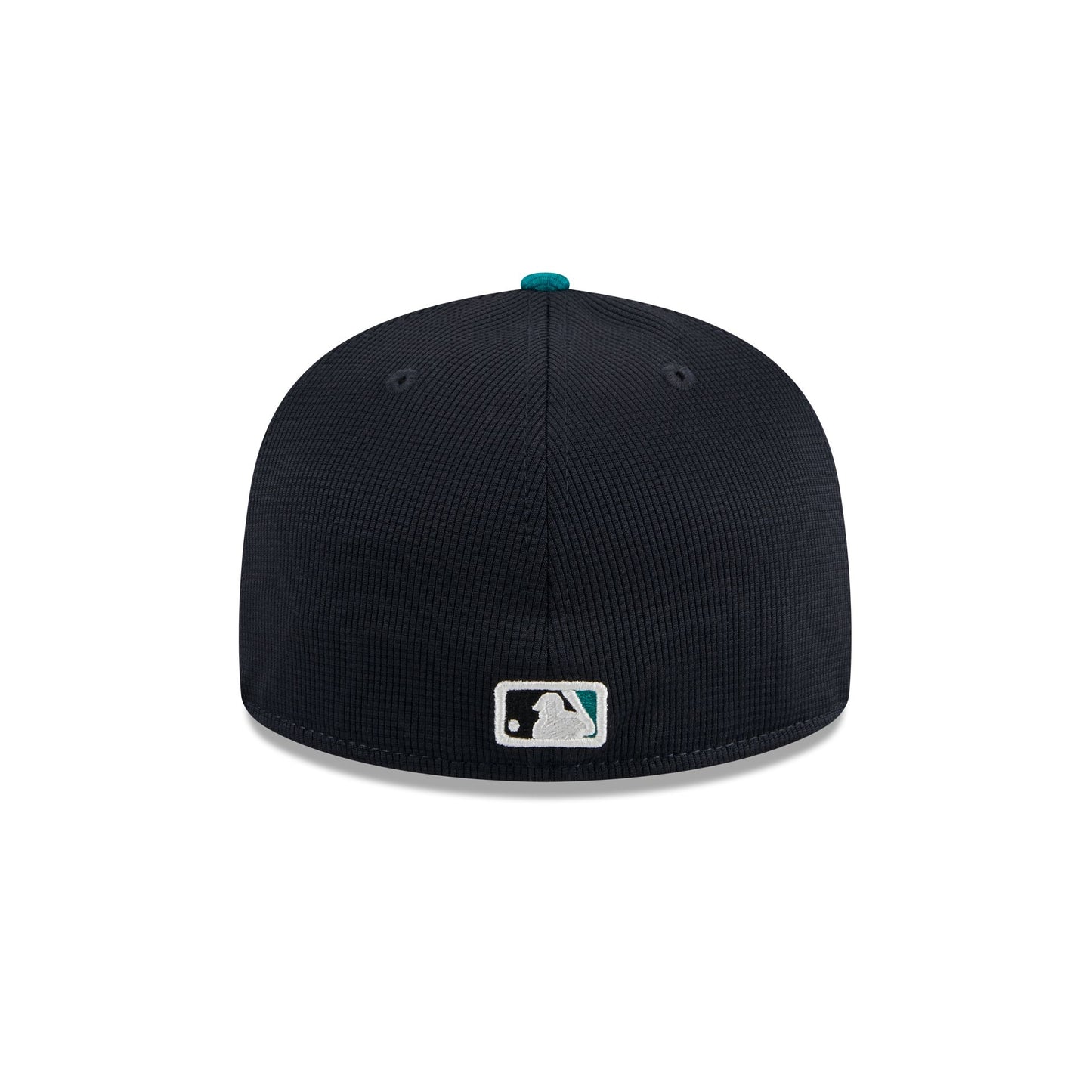 The Seattle Mariners 2025 Batting Practice 59FIFTY Fitted Cap features an embroidered Mariners logo at the front panels with a matching MLB Batterman logo at the rear. Additional details include a pivot knit fabrication, a teal visor, and a gray undervisor.