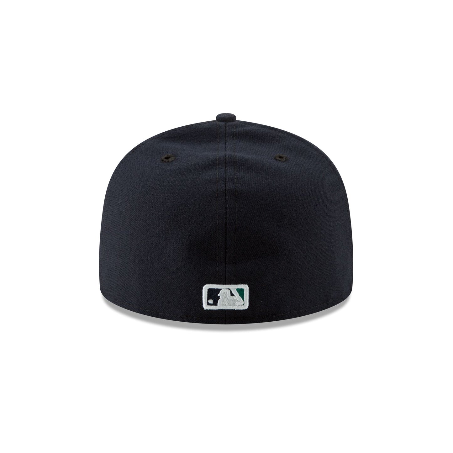 The Seattle Mariners 2025 Postseason Side Patch 59FIFTY Fitted Cap features an embroidered Mariners logo at the front panels with a 2025 Postseason patch at the right-wear side and the MLB Batterman logo at the rear.