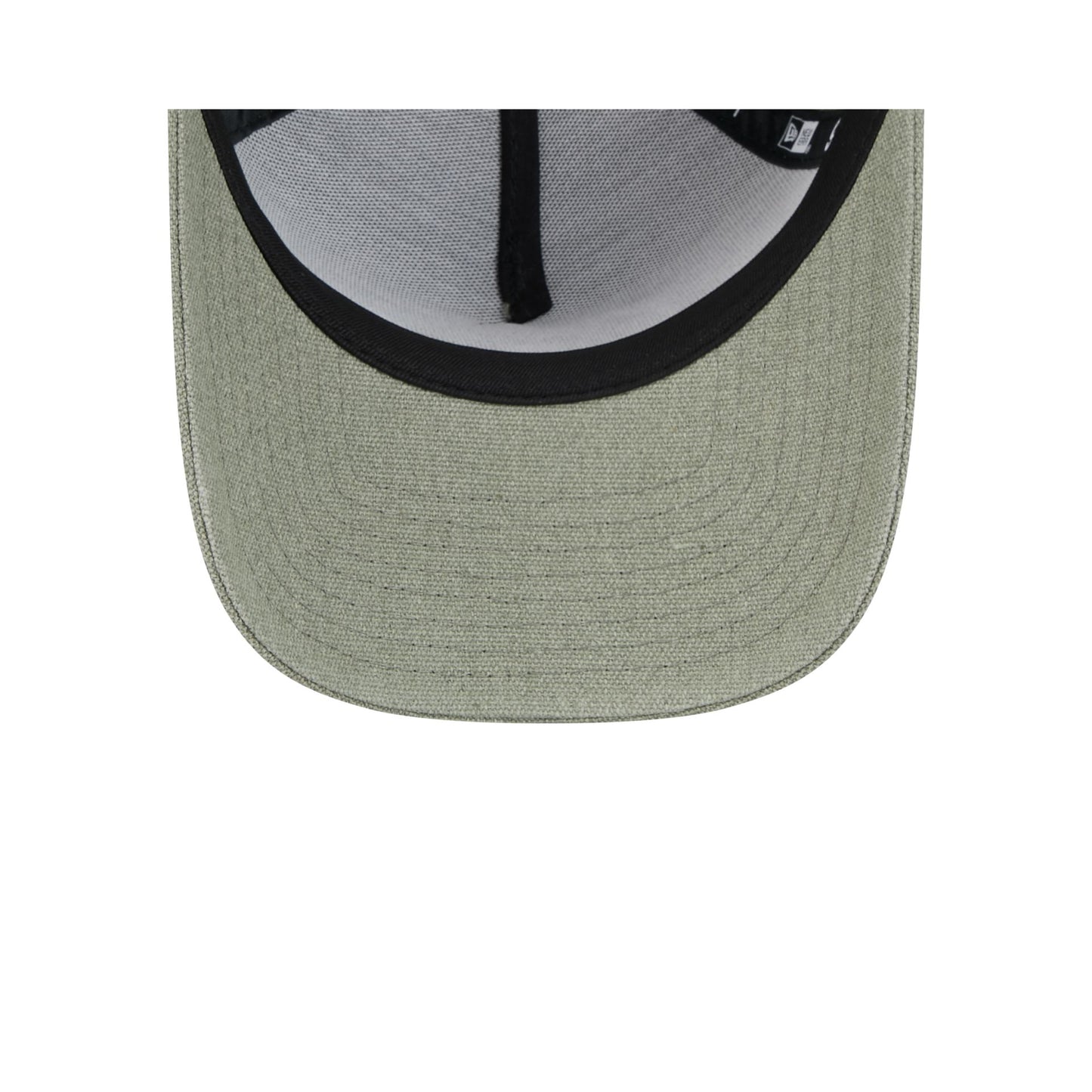 The Seattle Mariners Logo Essentials Olive 9FORTY A-Frame Snapback features an embroidered Mariners logo at the front panels with a snapback closure at the rear.