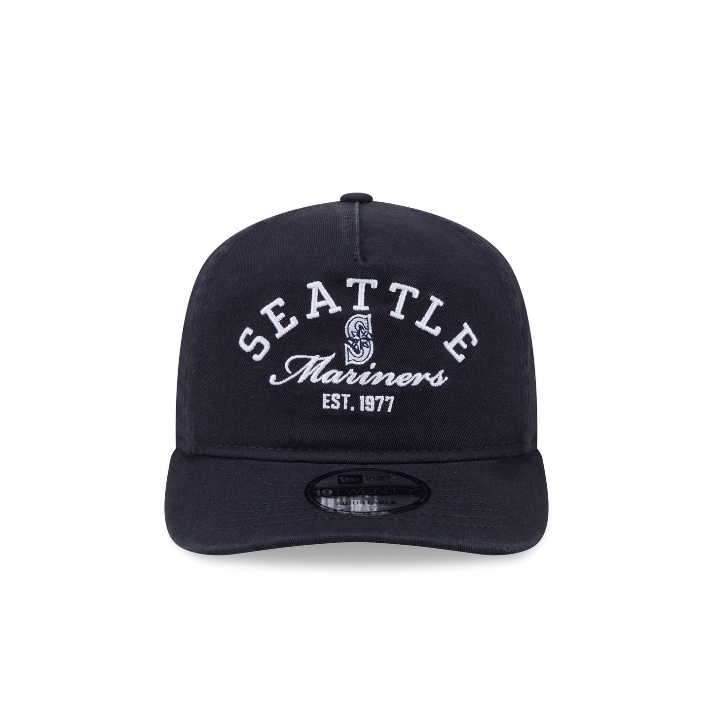 The Seattle Mariners Stacked 19TWENTY Adjustable Cap features an embroidered Mariners stacked arch graphic at the front panels with an adjustable snapback closure at the rear and a gray undervisor.