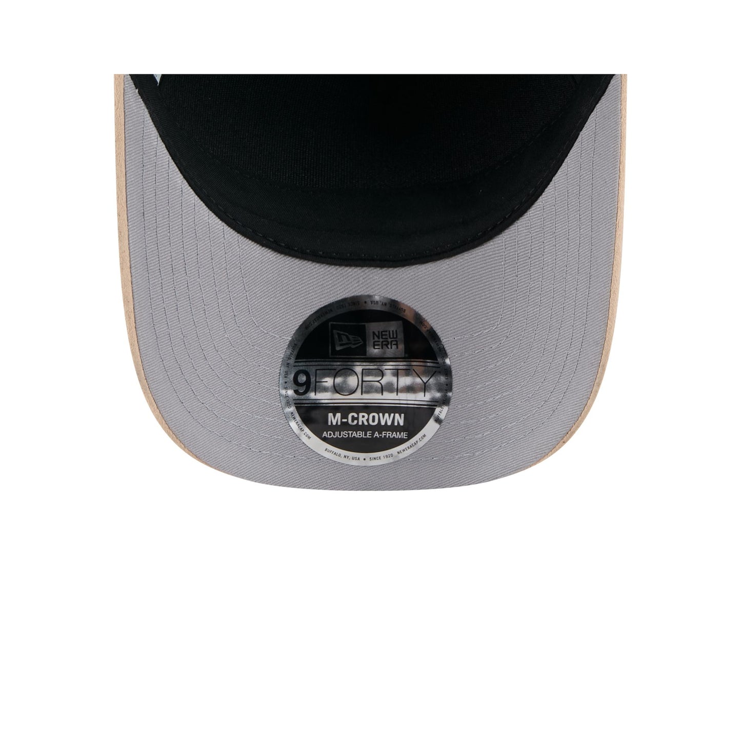 The Seattle Mariners Suede Patch 9FORTY M-Crown A-Frame Adjustable Cap features an embroidered Mariners suede patch with screen-print and tack down embroidery at the front panels. Additional details include a twill crown, a suede visor and adjustable D-Ring closure at the rear, and a gray undervisor.