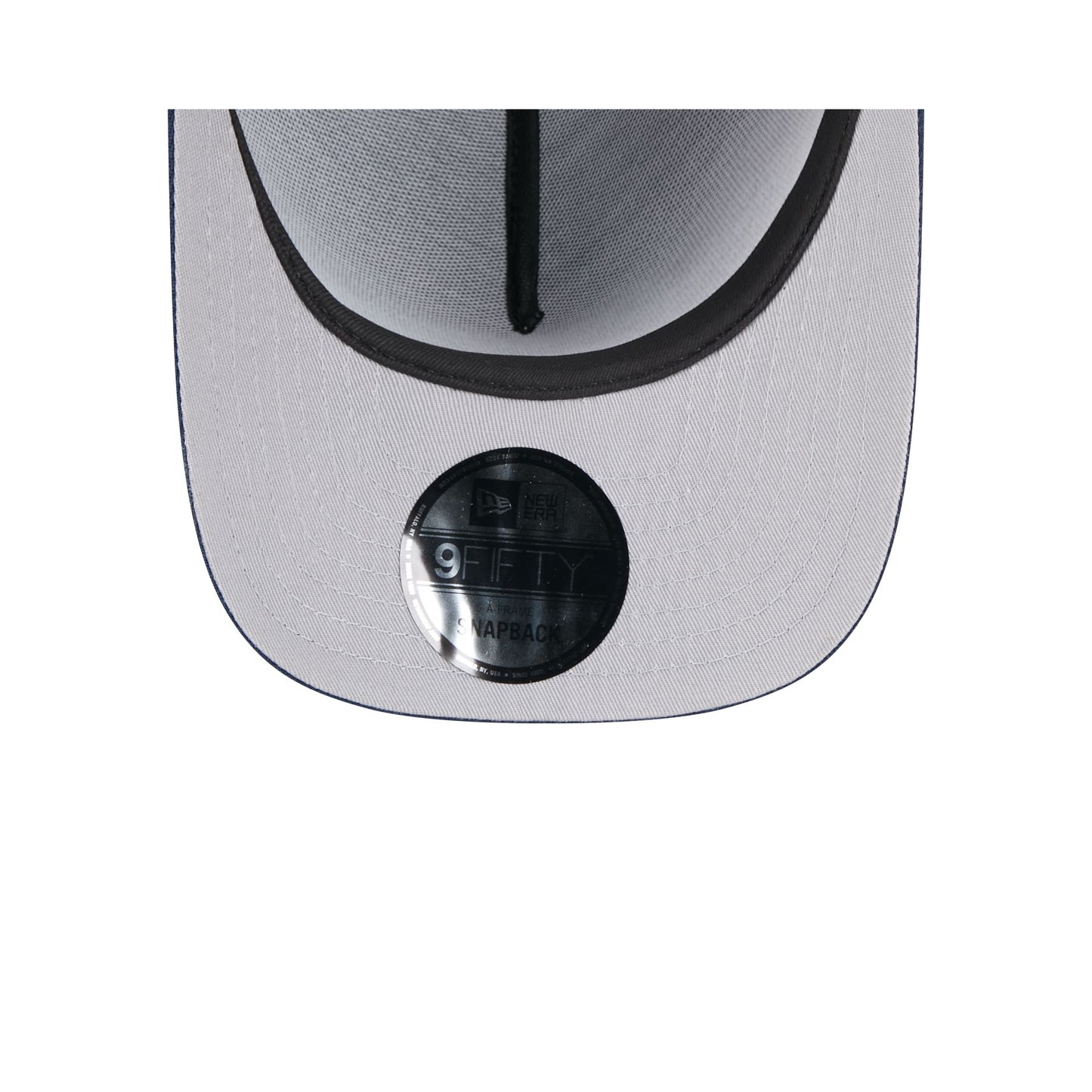 The Seattle Seahawks 2025 Draft 9FIFTY A-Frame Snapback features an embroidered Seahawks logo and wordmark at the front panels with an NFL Shield logo above a snapback closure at the rear. Additional details include ornamental stitched details at the visor and a gray undervisor.