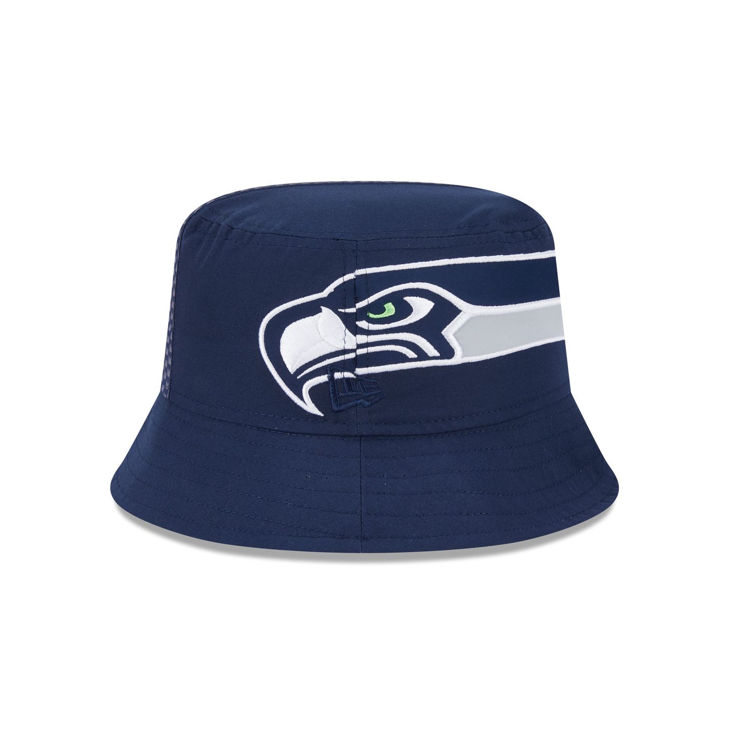 The Seattle Seahawks Helmet Bucket Hat features an embroidered Seahawks helmet design throughout.