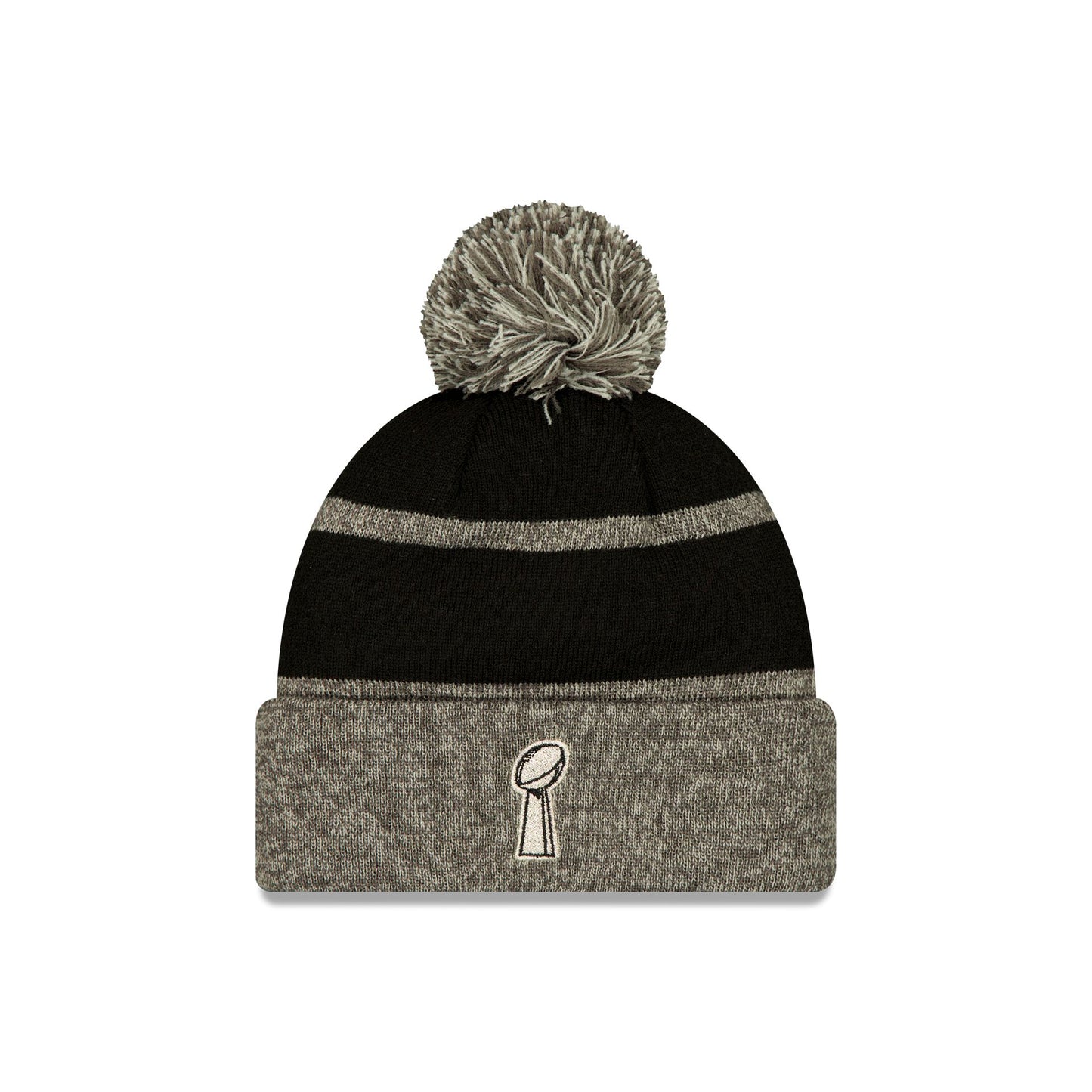 The Seattle Seahawks Super Bowl LX Champions Parade Pom Knit features an embroidered Seahawks logo at the front cuff with the Vince Lombardi trophy at the rear. Additional details include a Super Bowl LX Champions wordmark at the crown and a one-time removable pom.
