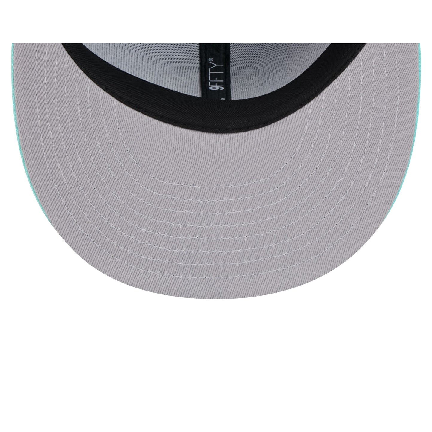 The Seattle Sounders Team 9FIFTY Snapback features an embroidered Sounders logo at the front panels with a matching snapback closure at the rear and a gray undervisor.
