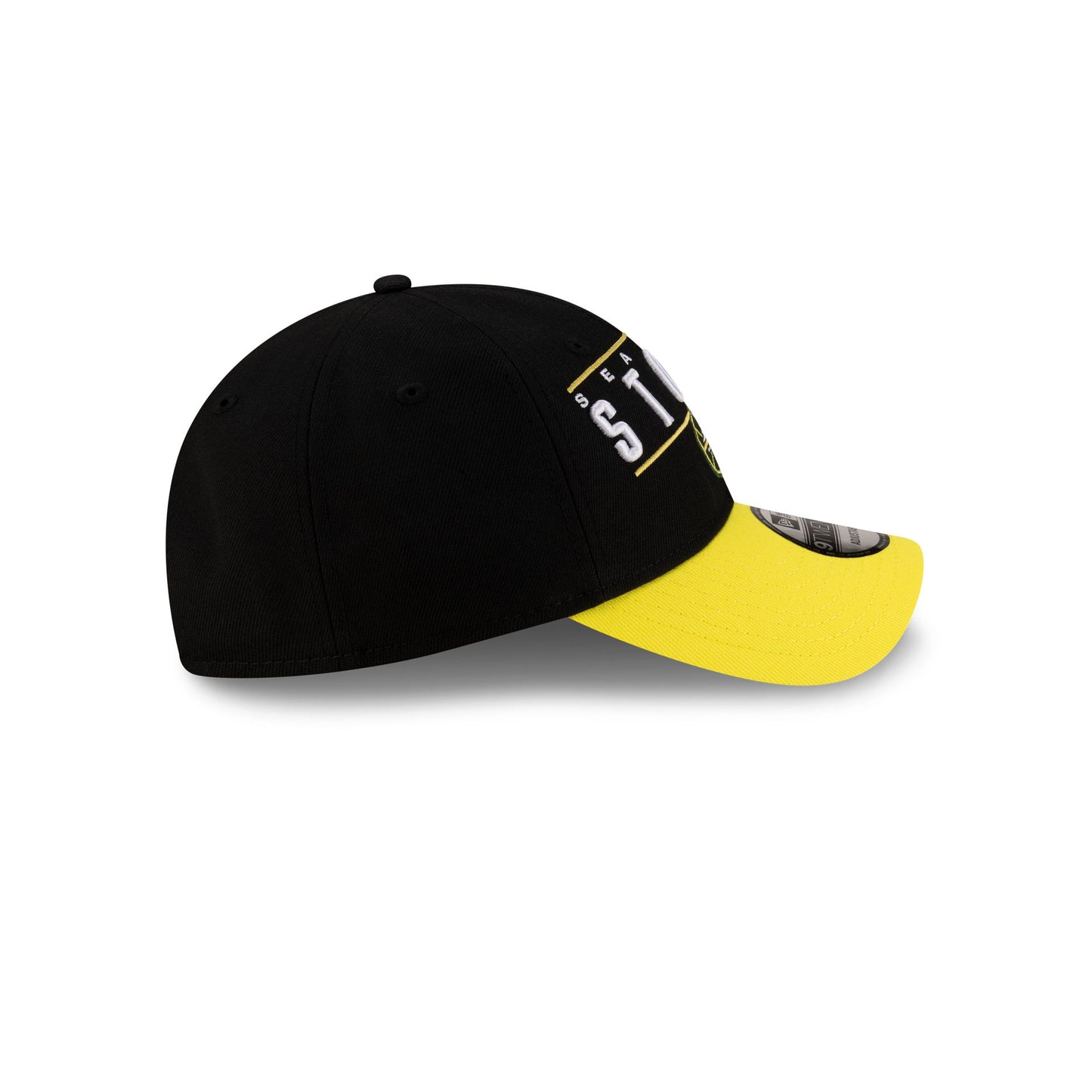 The Seattle Storm 2025 Draft 9TWENTY Adjustable Cap features an embroidered Storm logo and wordmark at the front panels with a WNBA Logowoman above an adjustable D-Ring closure at the rear.