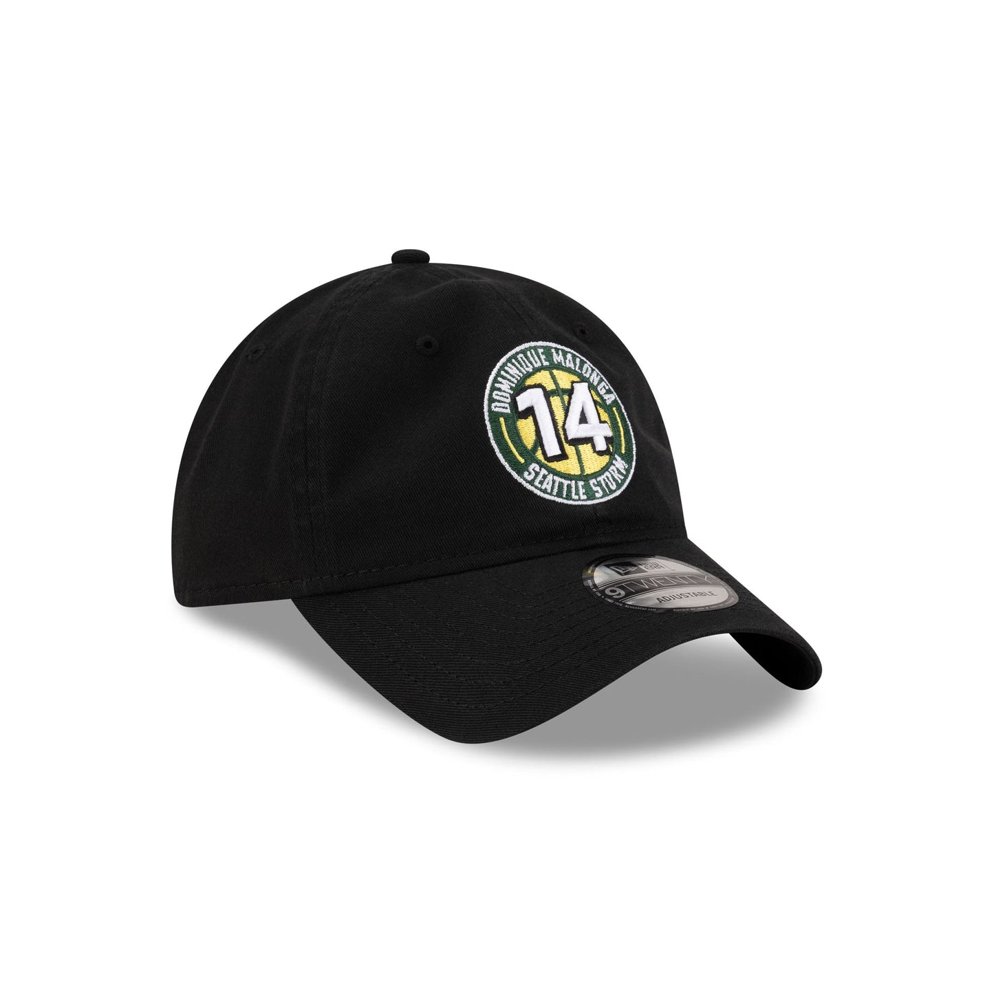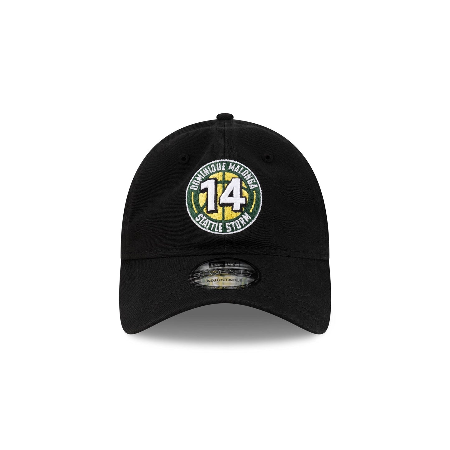 The Seattle Storm Dominique Malonga 9TWENTY Adjustable Cap features the player's name and number at the front panels with an adjustable D-Ring closure at the rear.