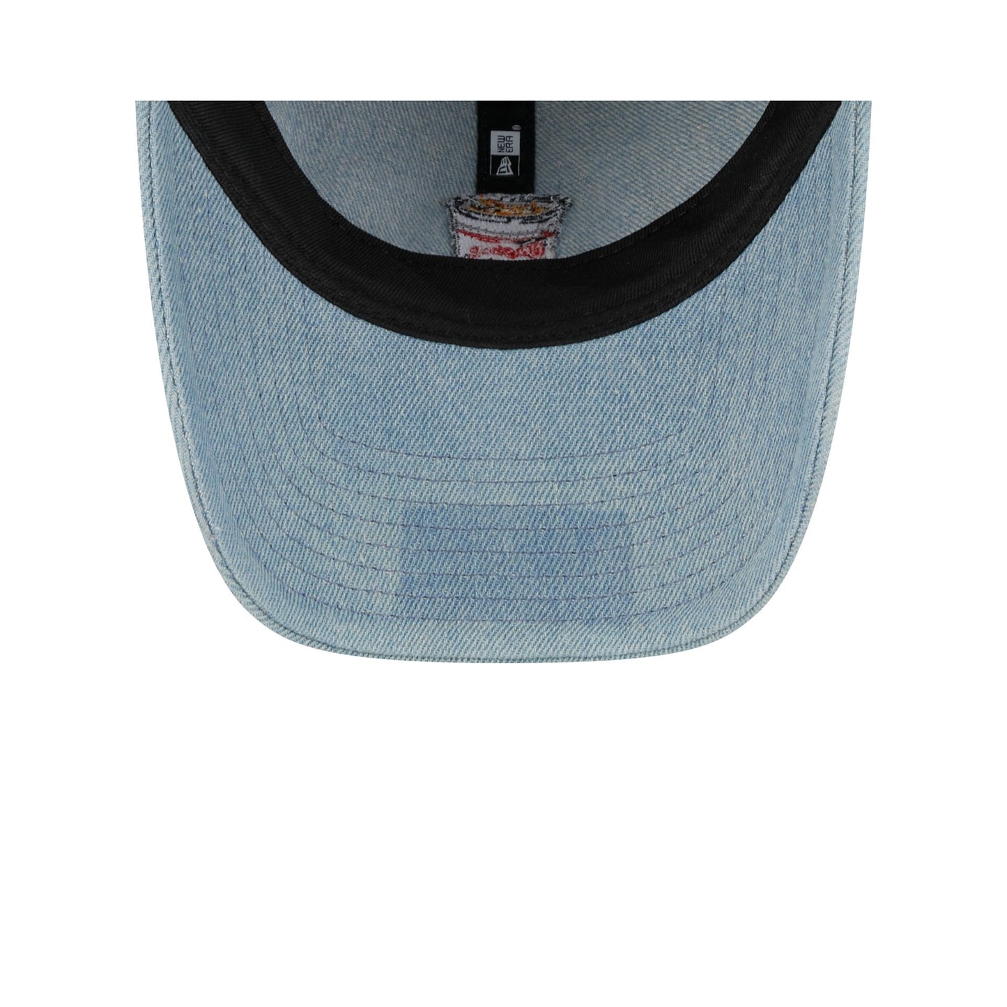 The Seinfeld Denim 9TWENTY Adjustable Cap features an embroidered No Soup For You to-go cup at the front panels with an adjustable D-Ring closure at the rear.