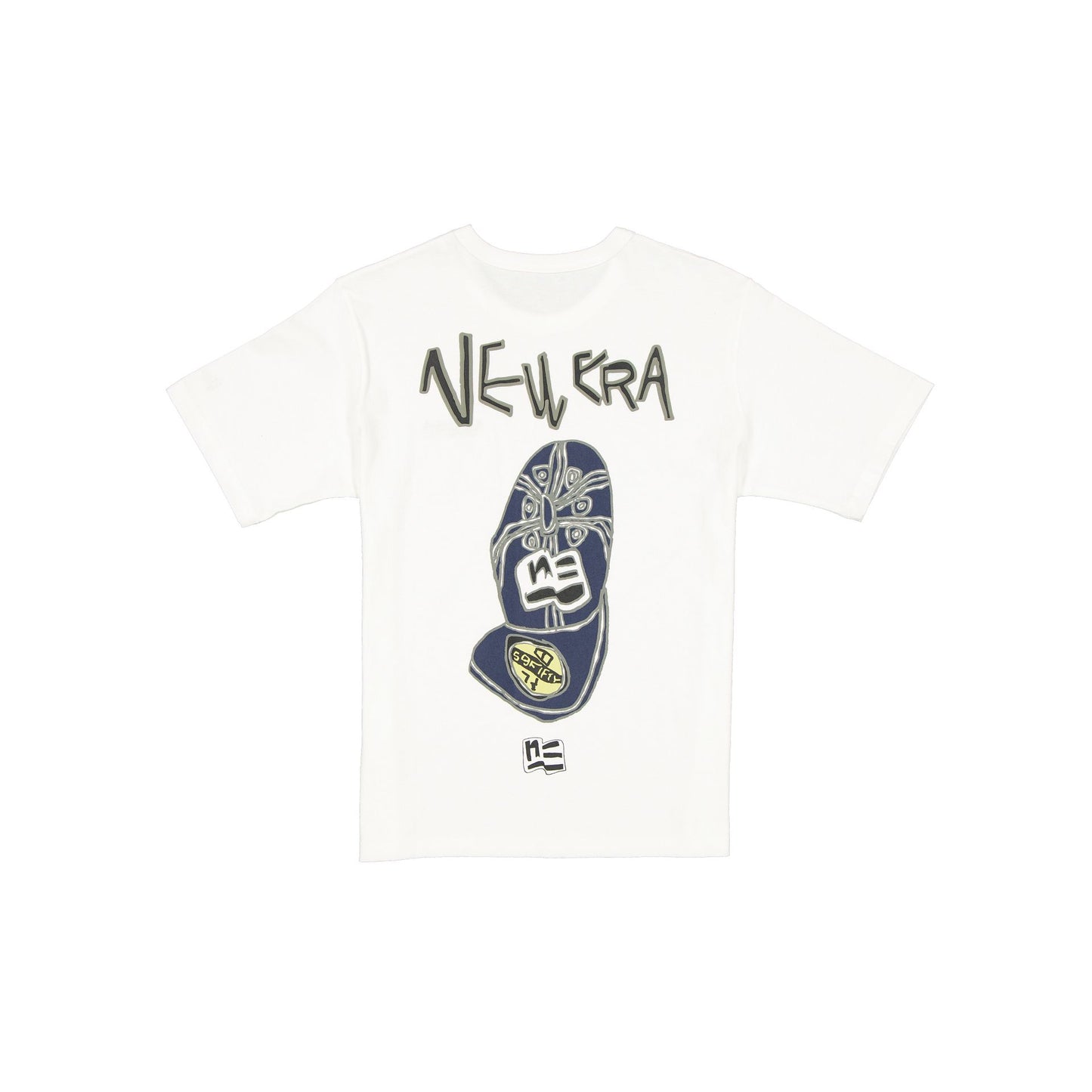 The Shohei Ochiai x New Era White T-Shirt features a screen-printed New Era wordmark at the left chest and cap graphic at the rear.