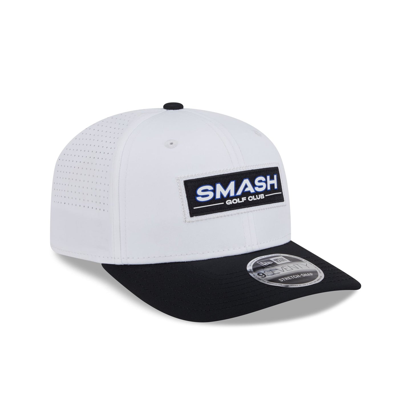 The Smash GC White 9SEVENTY Stretch-Snap features a woven Smash GC tag at the front panels with an adjustable stretch-snap closure at a performance mesh rear.