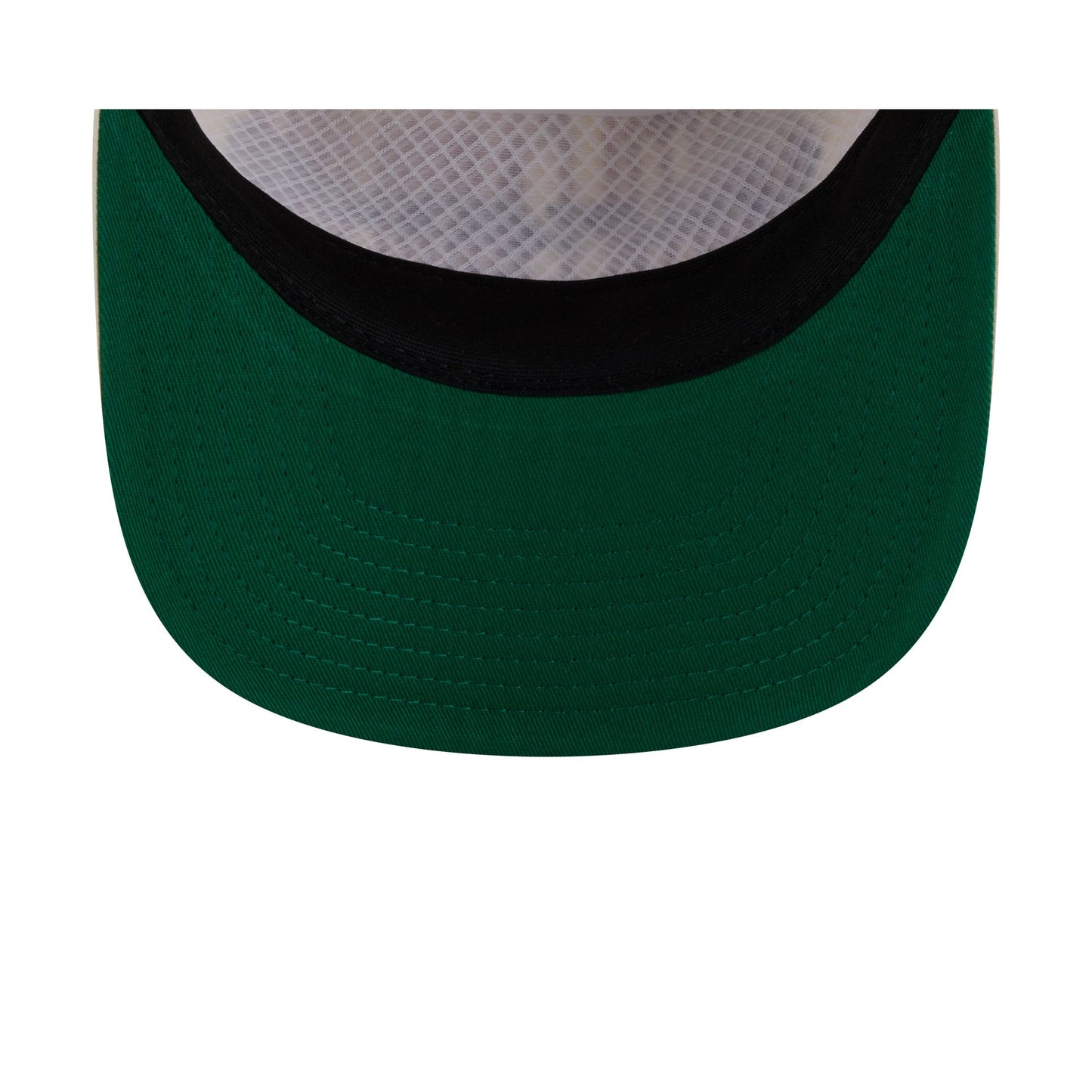 The South Carolina Gamecocks Collegiate Script Ivory Pre-Curved 19TWENTY Snapback features an embroidered Gamecocks wordmark and script at the front panel with a team logo at the right-wear side, a green undervisor, and an adjustable snapback closure at the rear.
