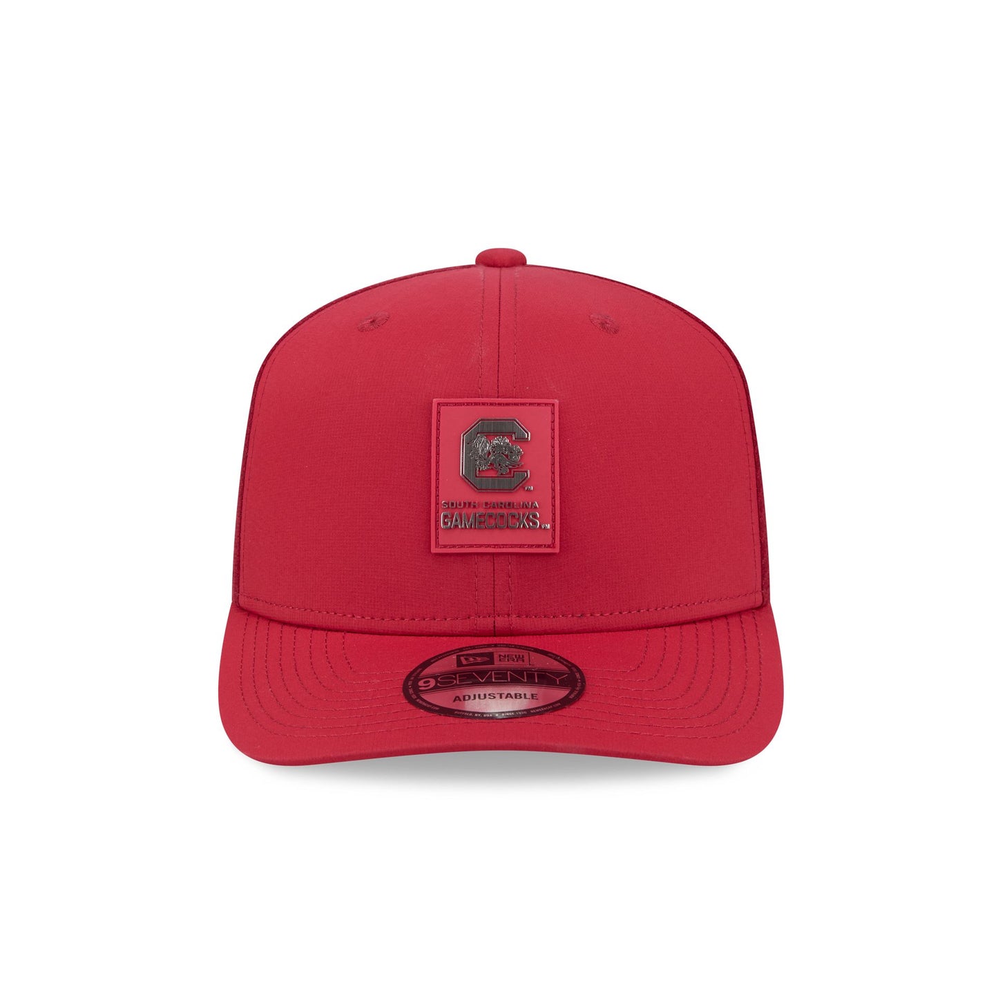 The South Carolina Gamecocks Hot Weather 9SEVENTY Trucker features a sewn-down silicone Gamecocks logo patch at the front panels with a water-repellent quill tech fabrication throughout and a quick-dry cushioned sweatband to absorb moisture. Additional details include a team wordmark on a soft silicone snapback closure at a light-weight mesh rear with team color silicone transfer details at the undervisor.
