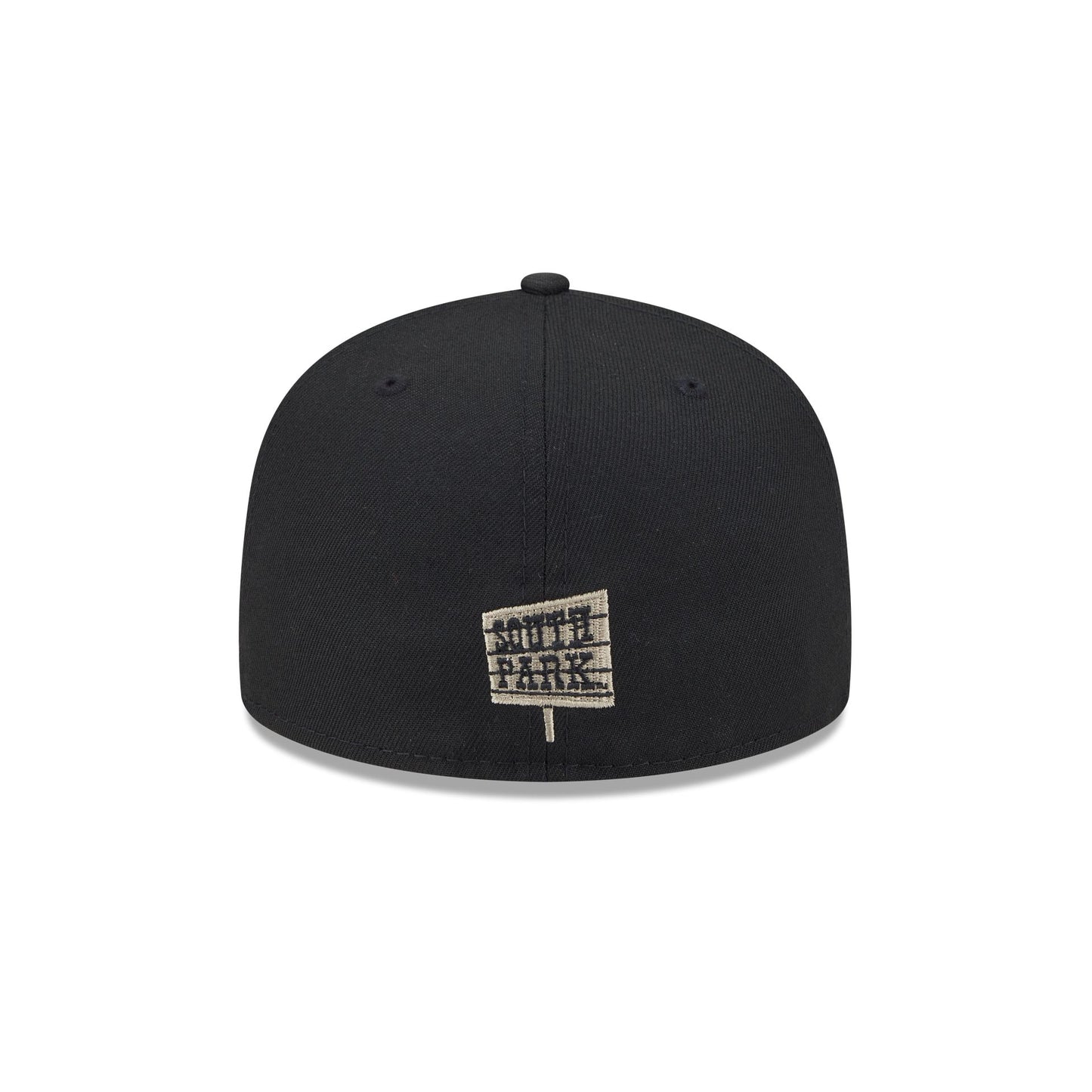 The South Park Character Wordmark 59FIFTY Fitted Cap features embroidered South Park characters and wordmark outlined at the front panels with a show logo at the rear and a gray undervisor.