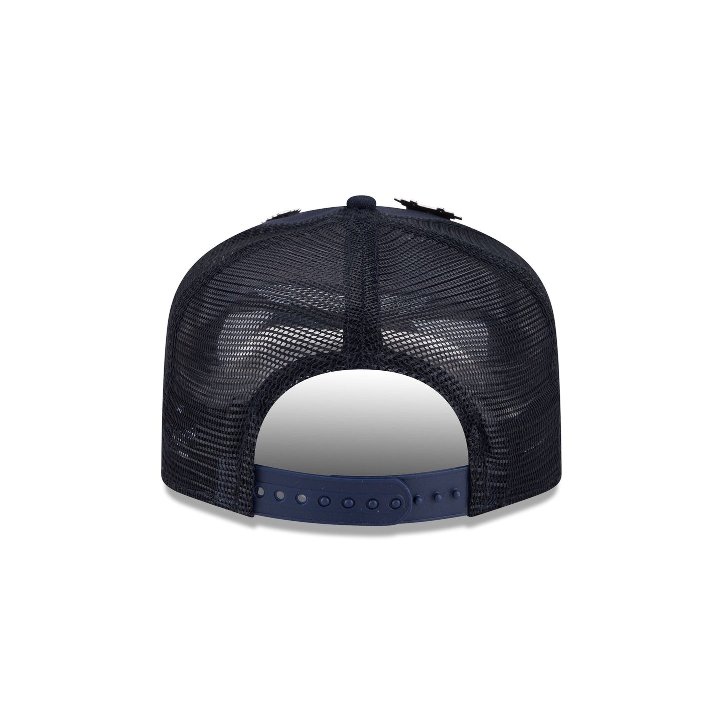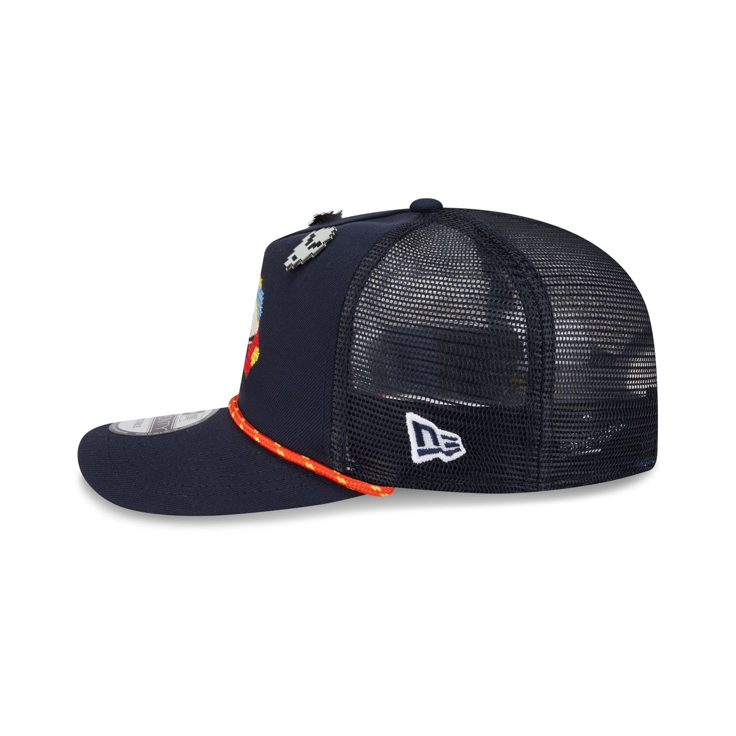 The South Park Eric Cartman 19TWENTY Trucker features a chain-stitched embroidered South Park Eric Cartman character and pins at the front with a snapback closure at the rear and a gray undervisor.