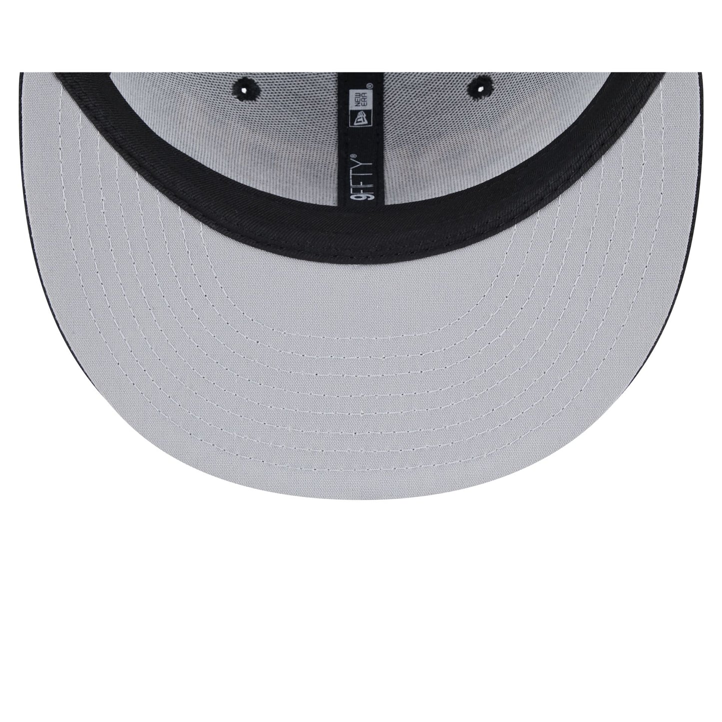 The South Park Team Tag 9FIFTY Trucker features an embroidered South Park logo at the front panels with a matching tag on a snapback closure at a mesh rear and a gray undervisor.