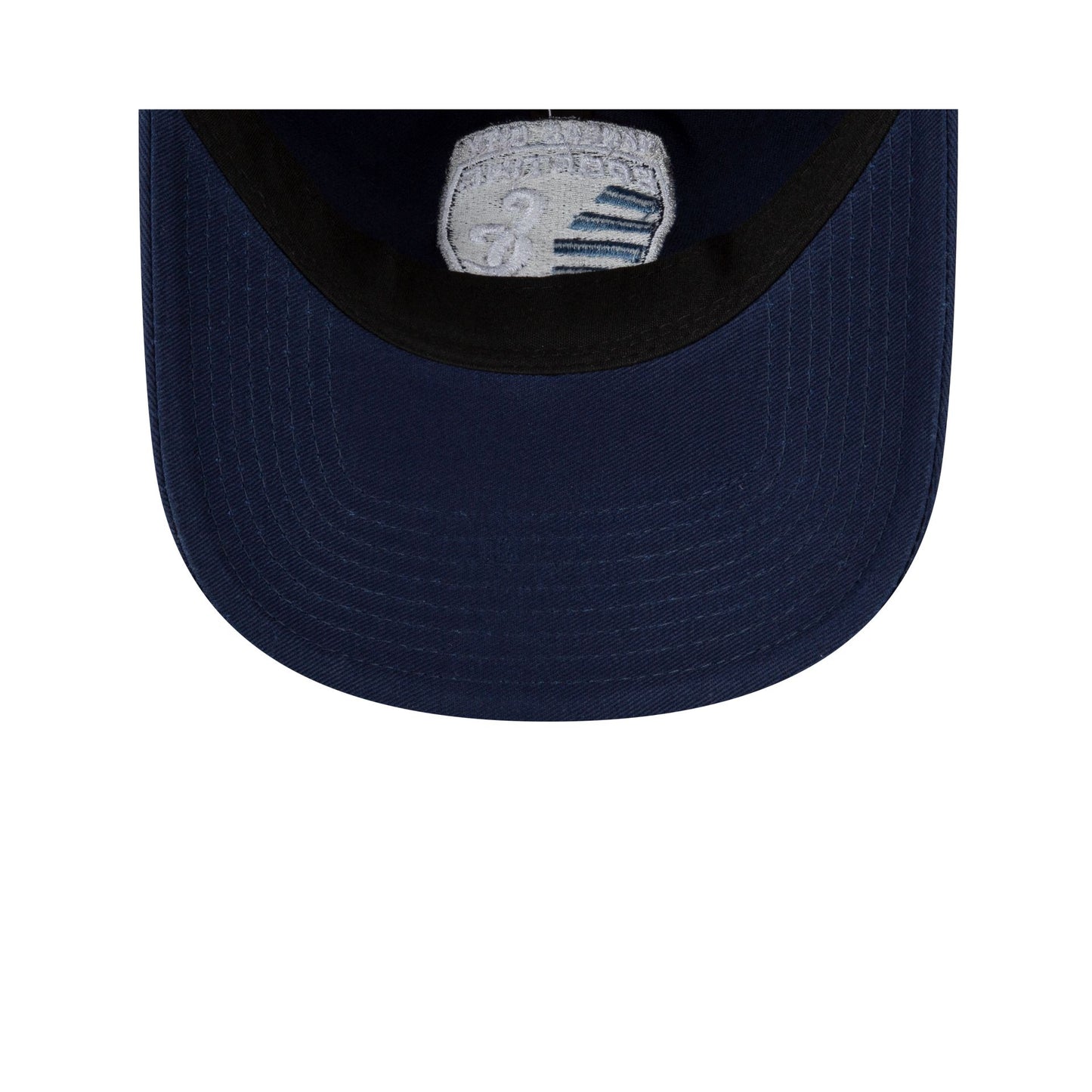 The Sporting Kansas City Blue 9TWENTY Adjustable Cap features an embroidered Sporting Kansas City logo at the front panels with a woven tab displaying the MLS logo on an adjustable closure at the rear.