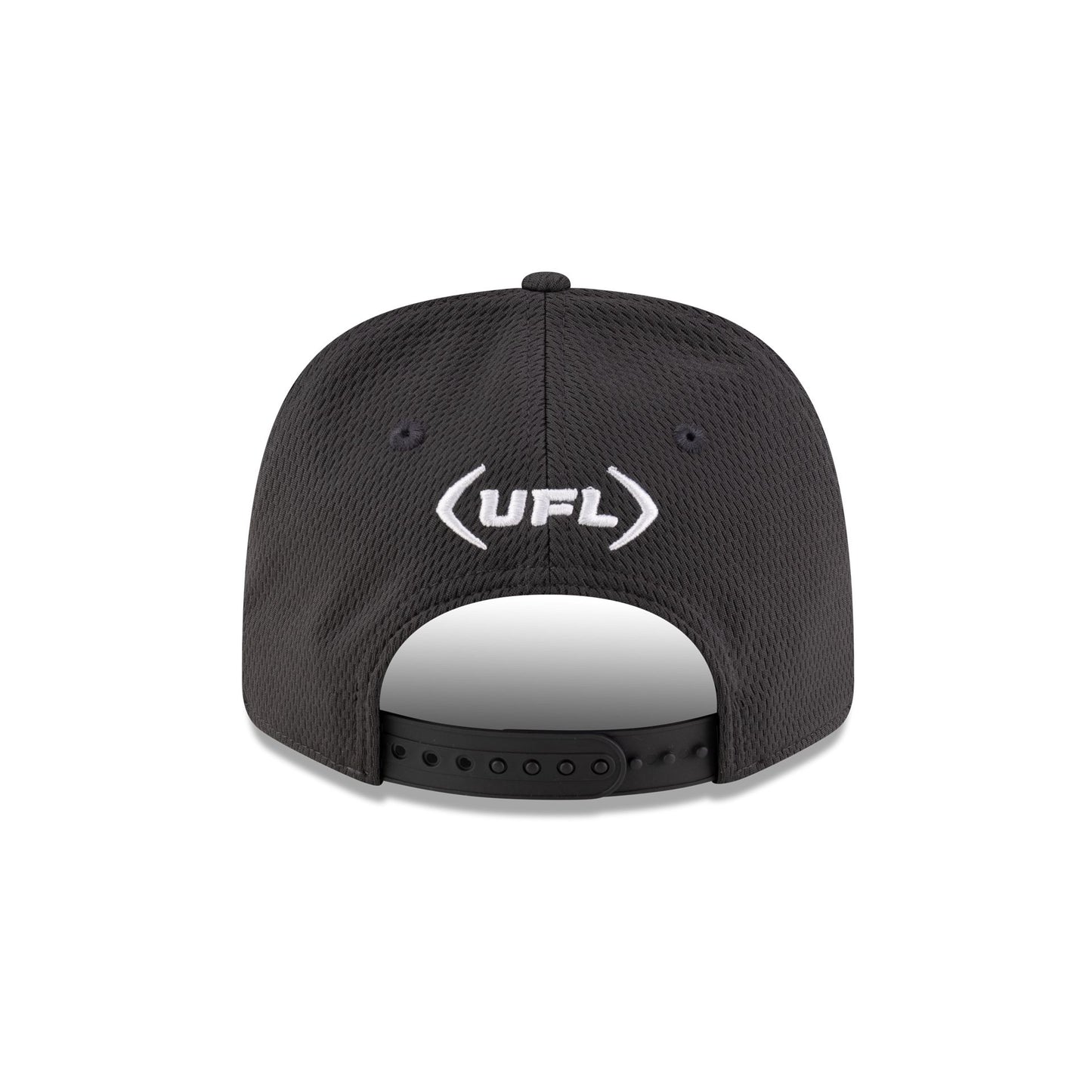 The St. Louis Battlehawks Gray 9SEVENTY Stretch-Snap features an embroidered Battlehawks logo at the front panels with the New Era Flag at the left. Additional details include a UFL logo above a snapback closure at the rear and a gray undervisor.