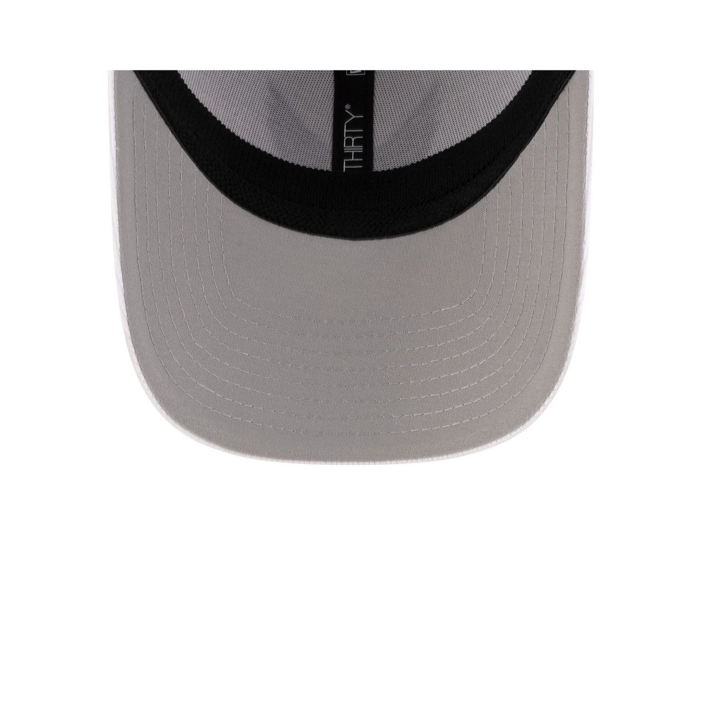 The St. Louis Battlehawks White 39THIRTY Stretch Fit Cap features an embroidered Battlehawks logo at the front panels with the New Era Flag at the left. Additional details include a UFL logo at the rear and a gray undervisor.