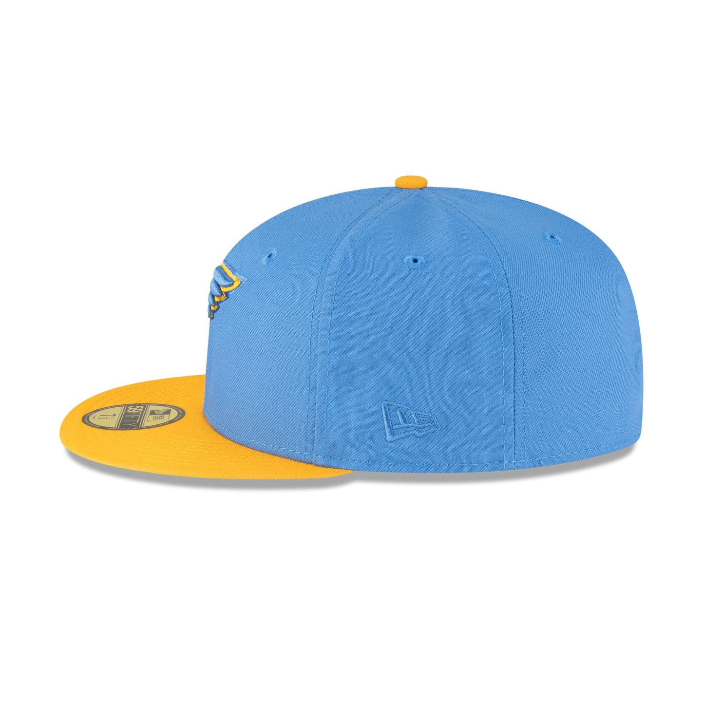 The St. Louis Blues Blue Crown 59FIFTY Fitted Cap features an embroidered Blues logo at the front panels with a matching NHL Shield at the rear and a yellow visor.