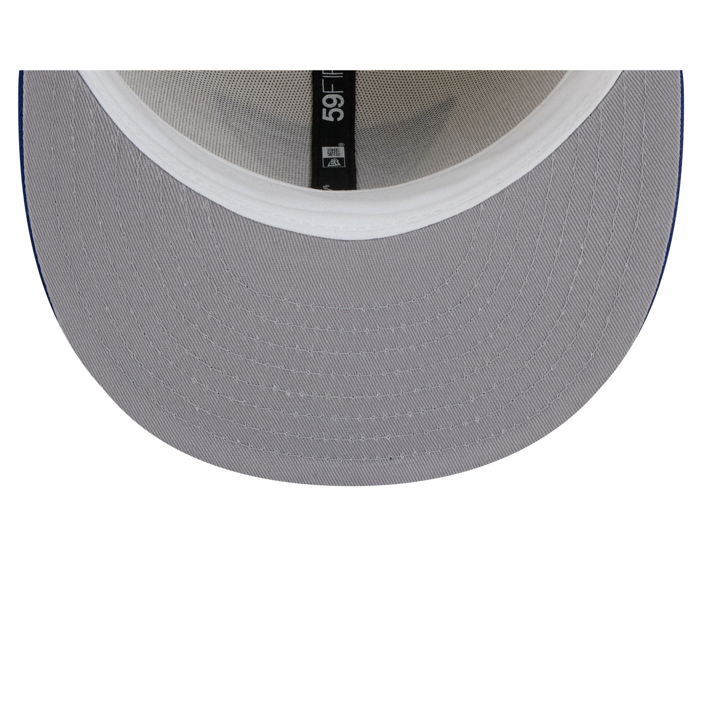 The St. Louis Blues Chrome White 59FIFTY Fitted Cap features an embroidered Blues logo at the front panels with a matching NHL Shield at the rear and a gray undervisor.